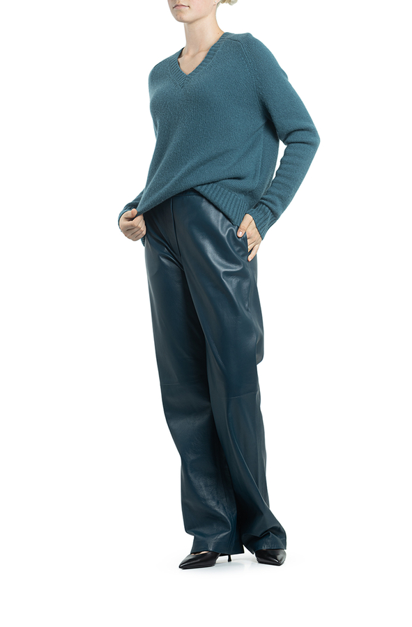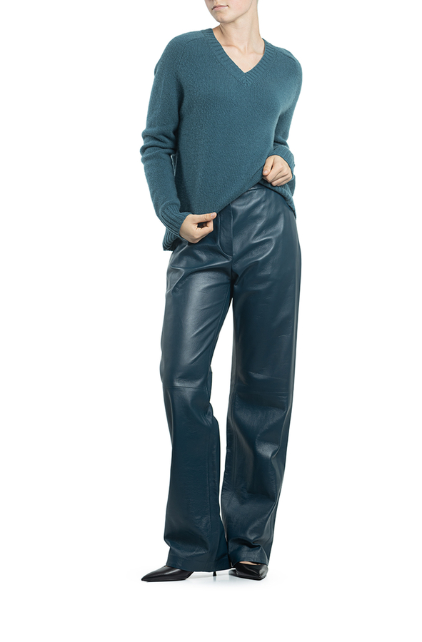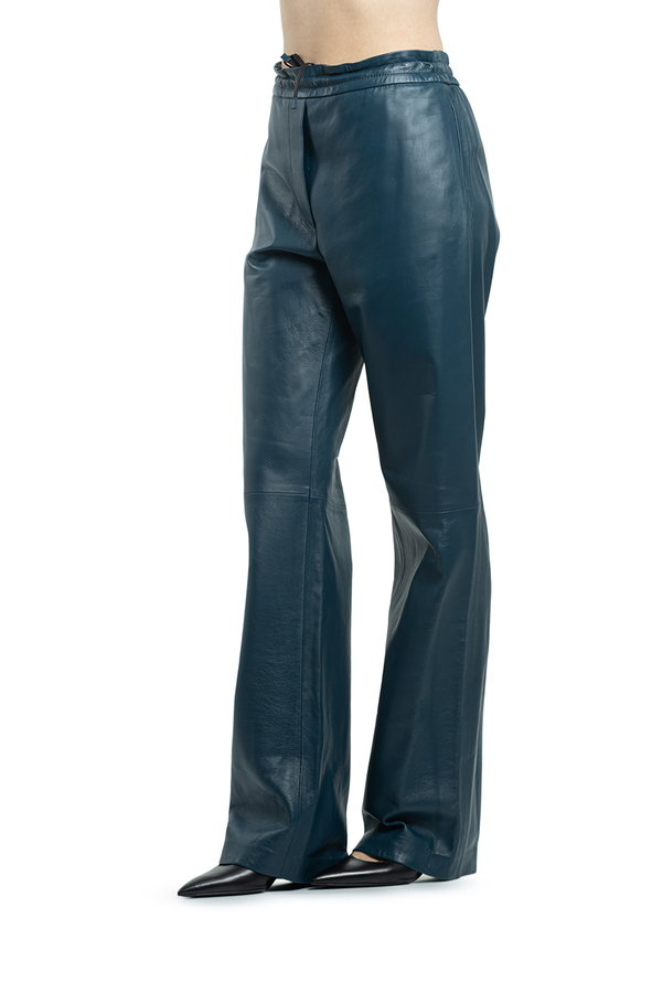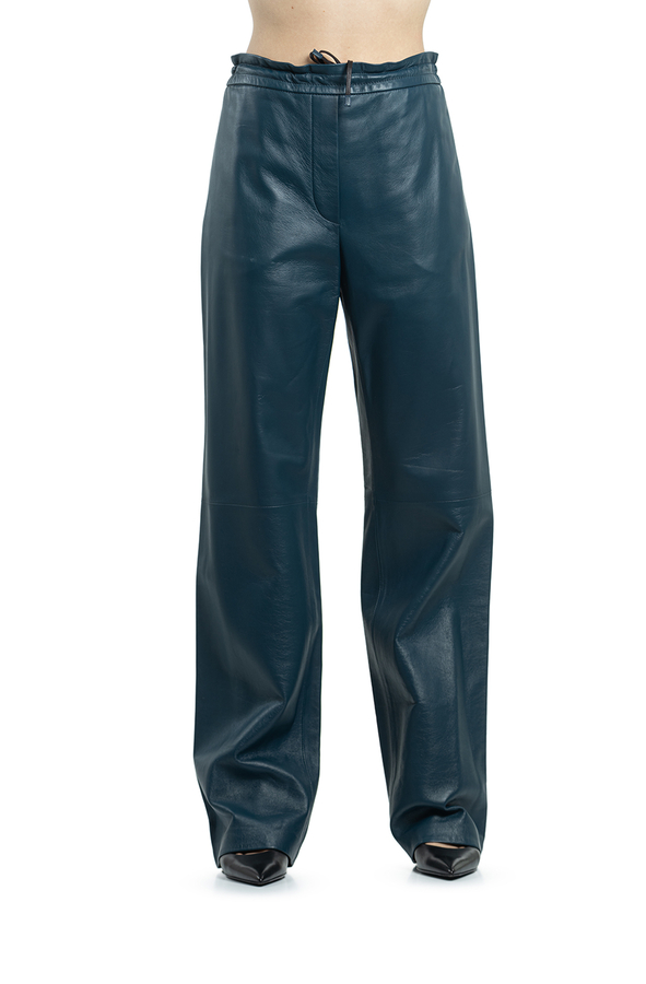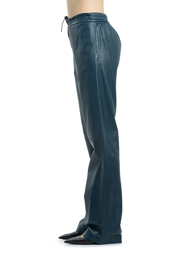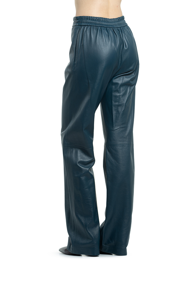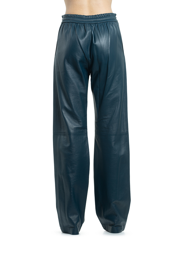 - Довгі прямі штани на резинці, з двома прорізними кишенями.