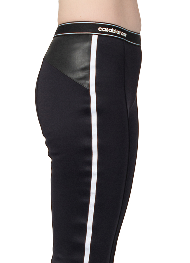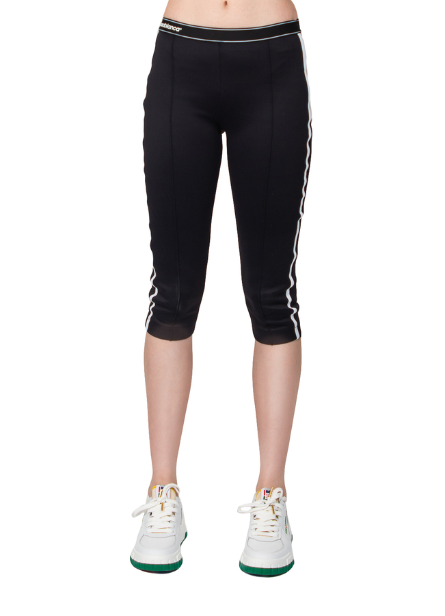 - Чорні укорочені легінси, білі лампаси, збоку застібка-блискавка