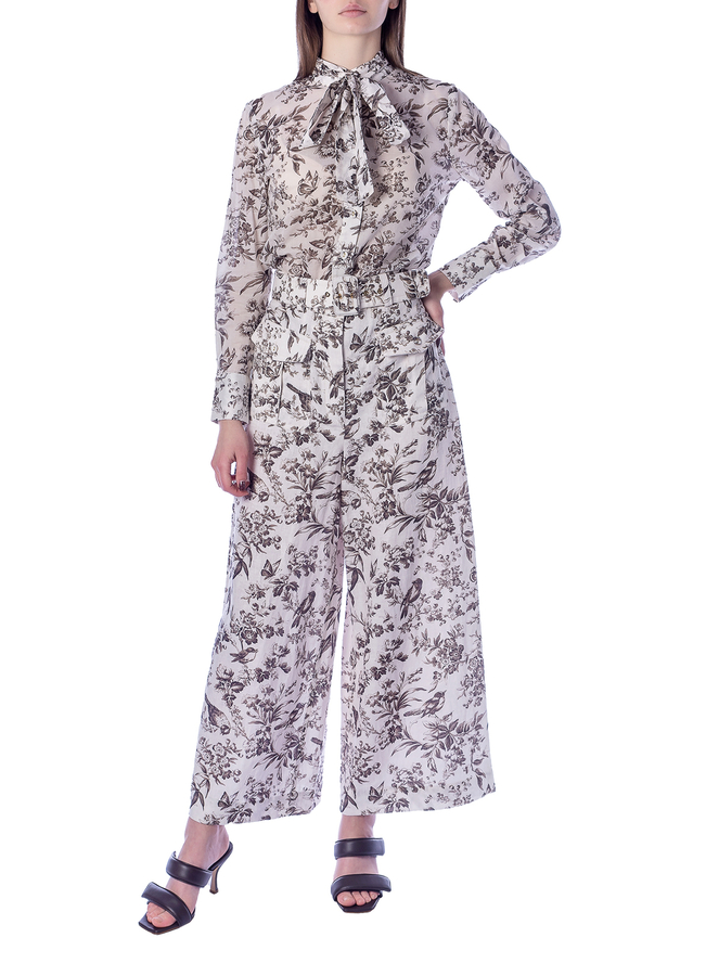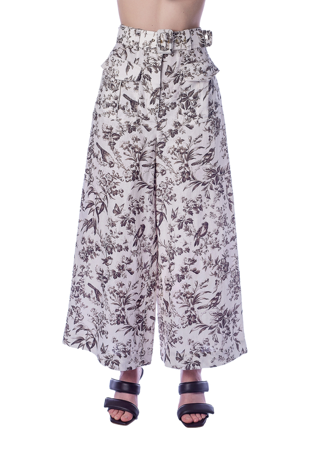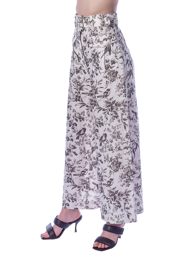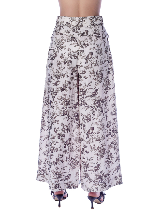 - Широкі лляні штани з високою талією та передньою накладною кишеню.
