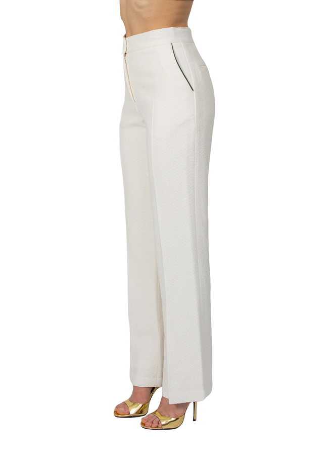 Штани із завищеною талією, застібкою-блискавкою спереду, двома бічними та двома задніми прорізними кишенями