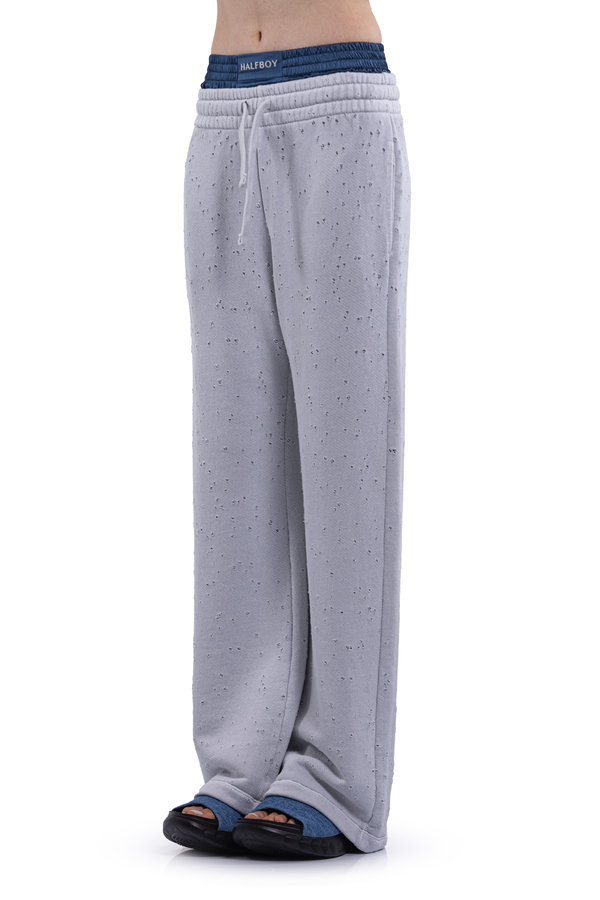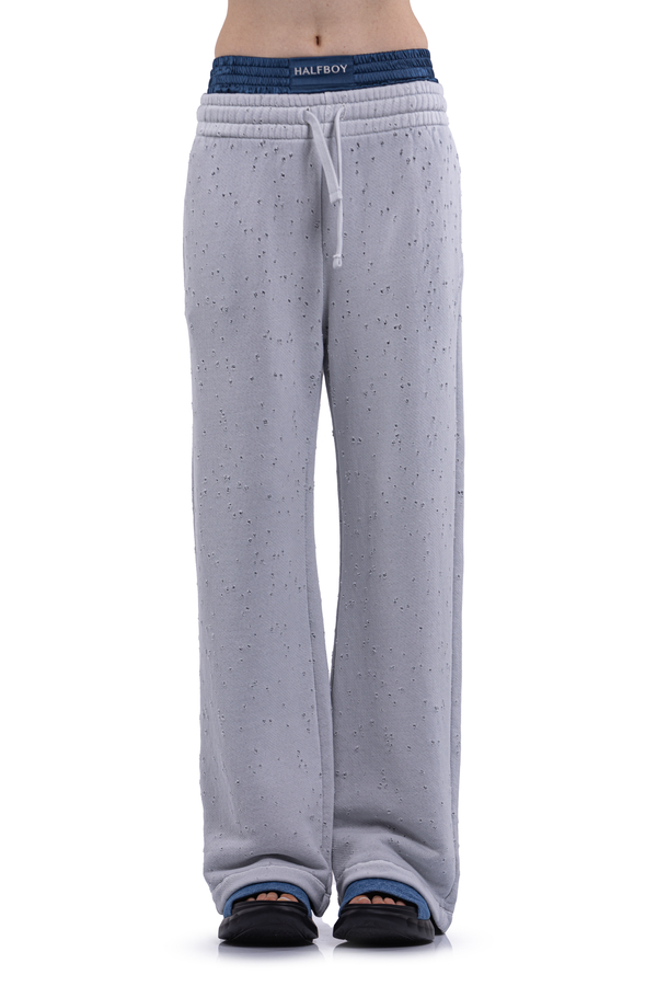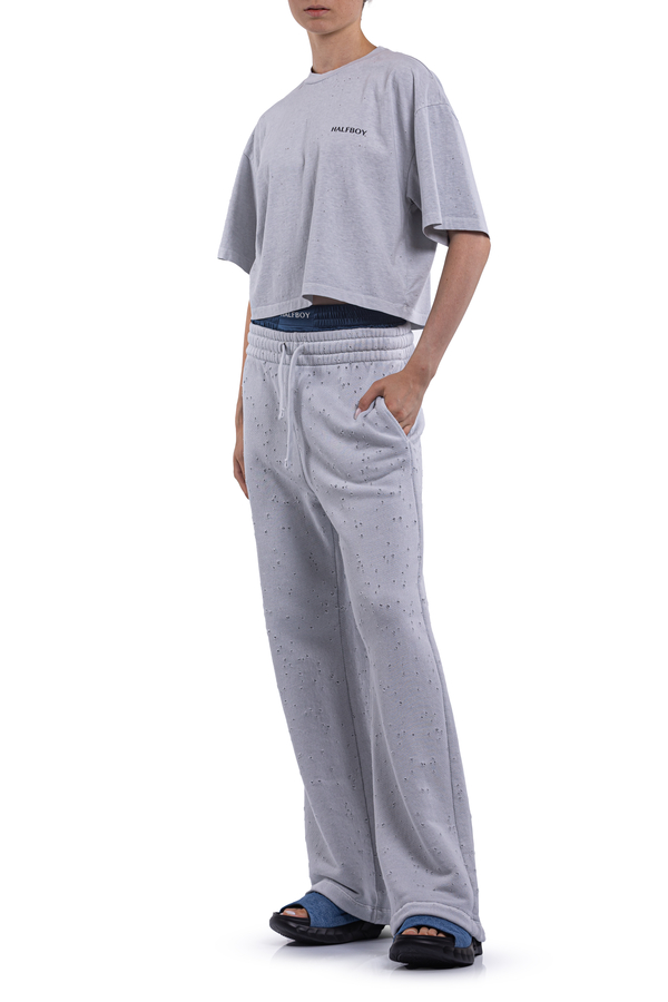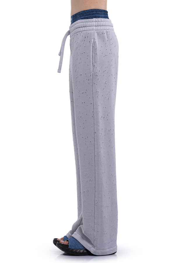 - Спортивні штани із дірочками, подвійний еластичний пояс на шнурку, дві кишені в бокових швах