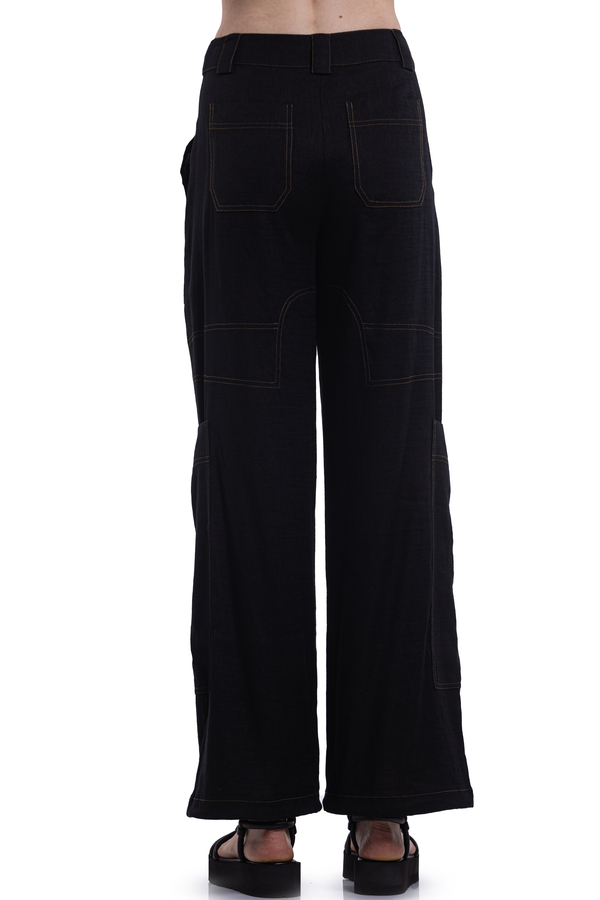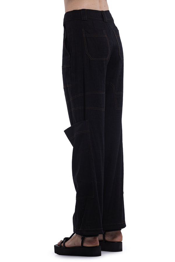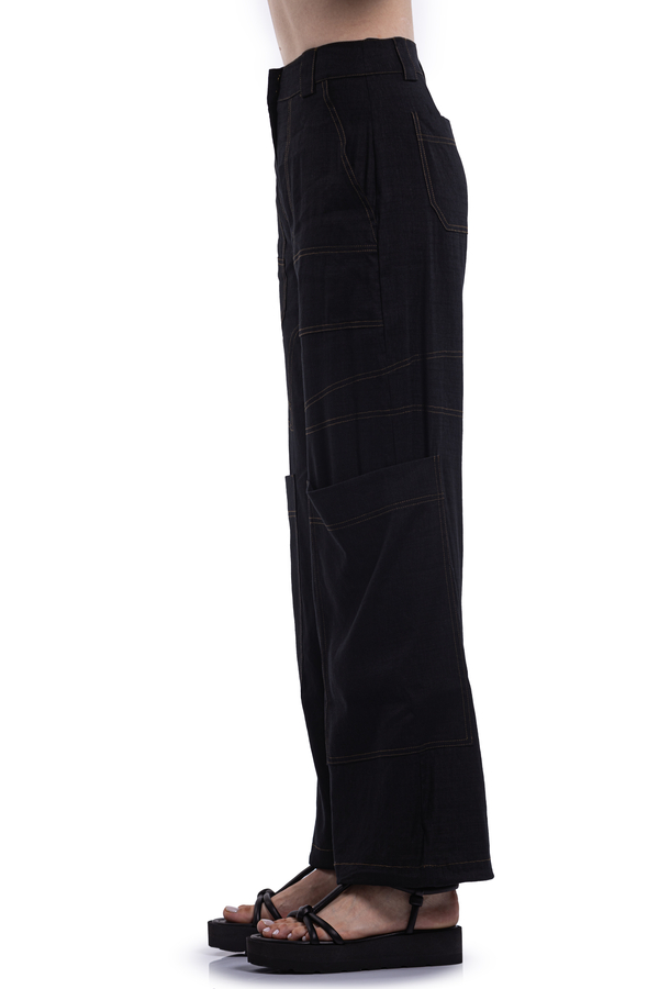 - Широкі штани, деталізація швів, великі накладні кишені по боках