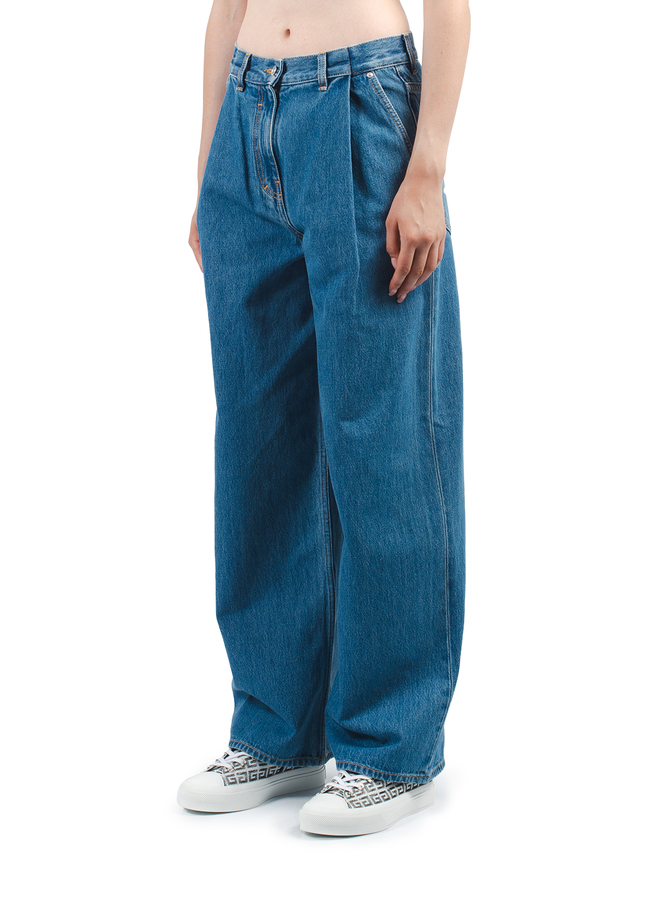 - Джинси з класичними п’ятьма кишенями, защипи спереду, застібка - ґудзик та блискавка, металеві елементи у вигляді логотипа 4G ззаду
