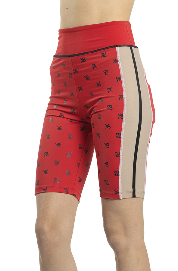 - Штани з ломпасами з боків. На еластичному поясі, патерн логотипів по всій поверхні.