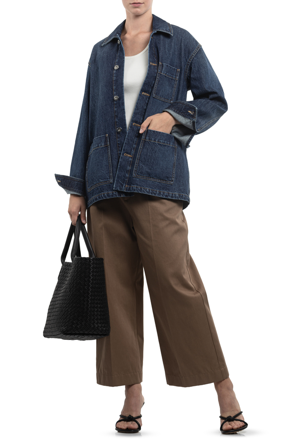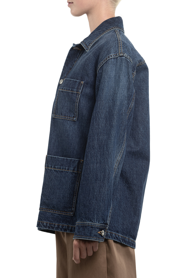 - Джинсова куртка, нагрудна накладна кишеня, дві бокові накладні кишені, застібка на гудзики