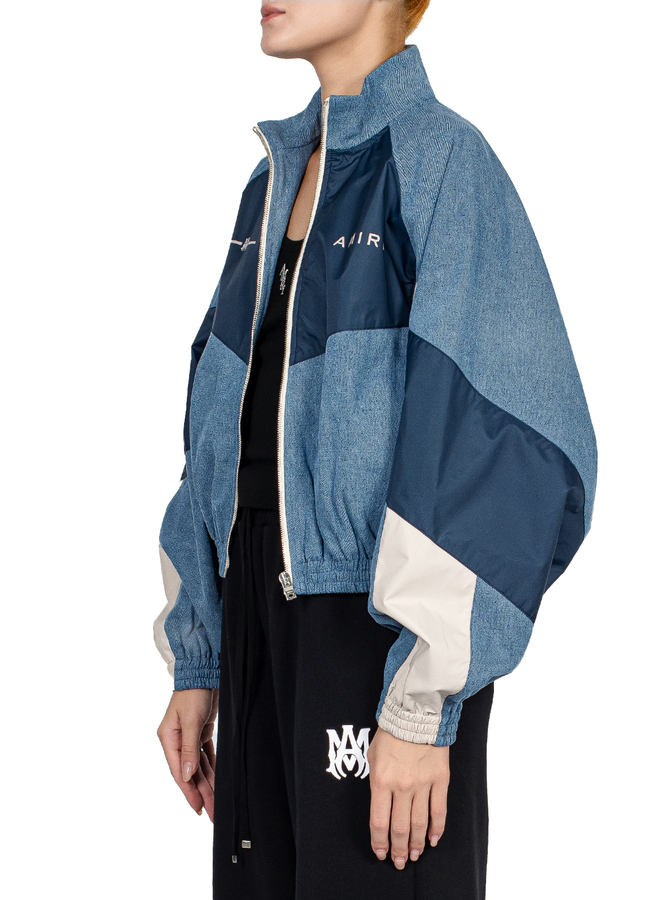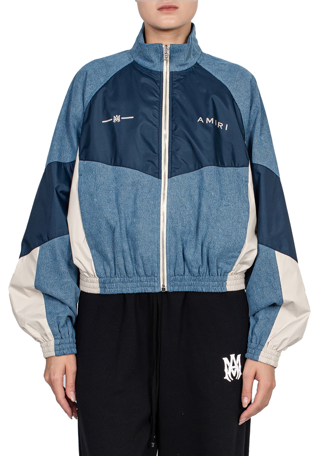 - Укорочена вітровка, дизайн з кольоровими панелями, логотип на грудях, довгі рукави реглан, застібка на подвійну блискавку спереду