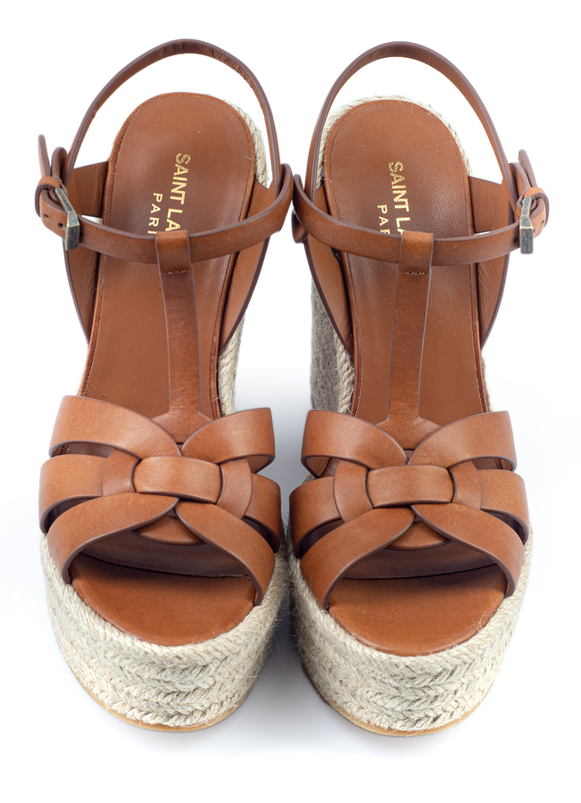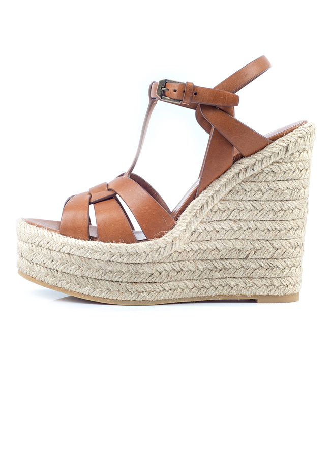 - Босоніжки - еспадрильї Tribute з відкритим носком на вісокій танкетці, бокова застібка на пряжці