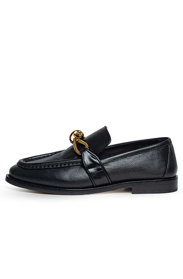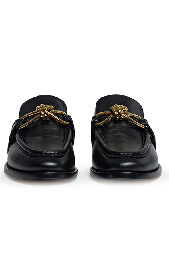 - Шкіряні лофери, спереду декор у вигляді золотистого вузла