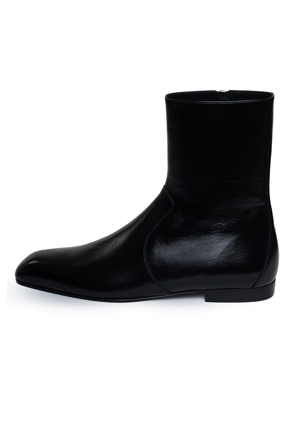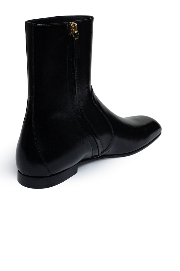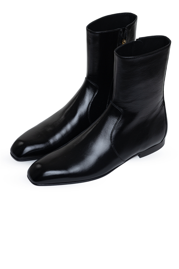 - Шкіряні черевики з глянсовим оздобленням, гострий носок, застібка-блискавка збоку, золотиста фурнітура