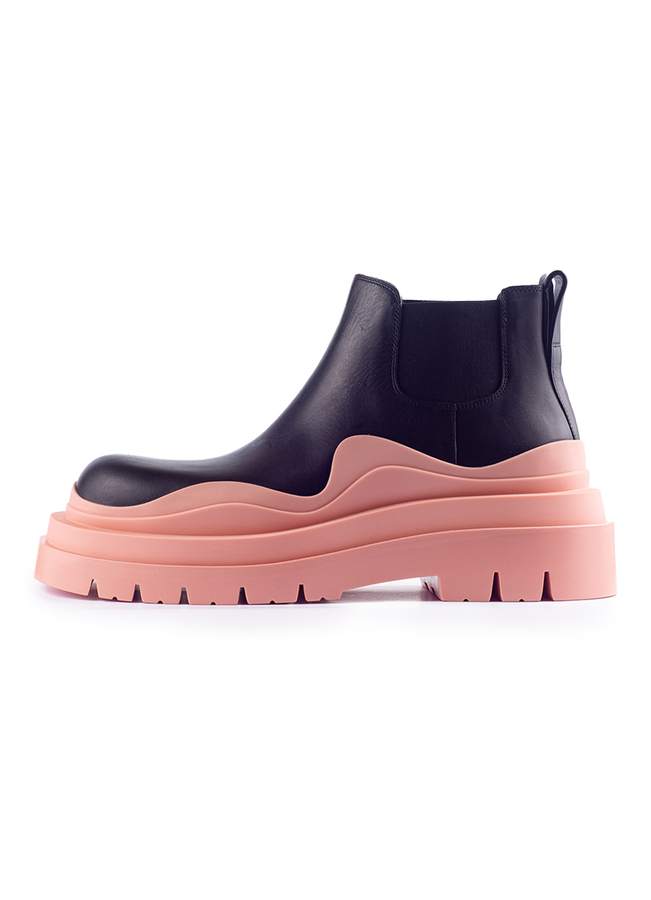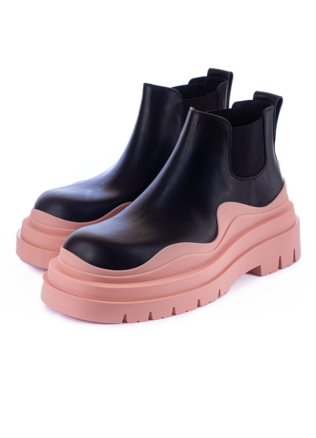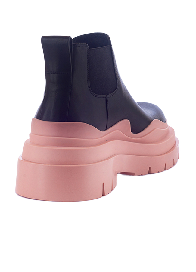 - Шкіряні черевики на рифленій гумовій підошві з петлею для підтягування ззаду, еластичними бічними панелями, з заокругленим носком.