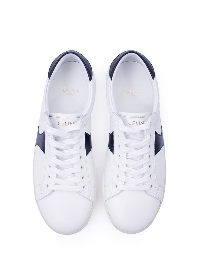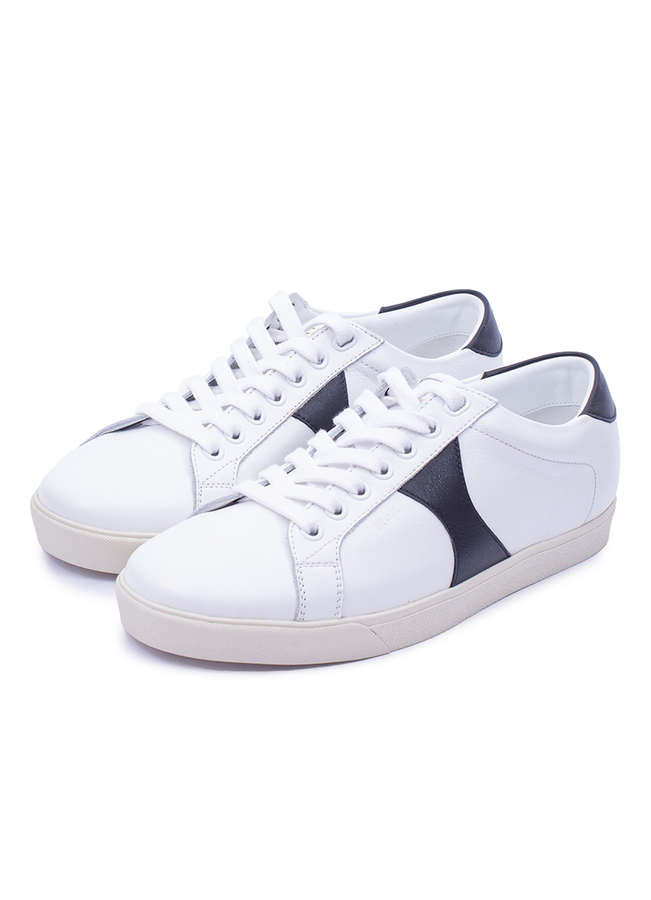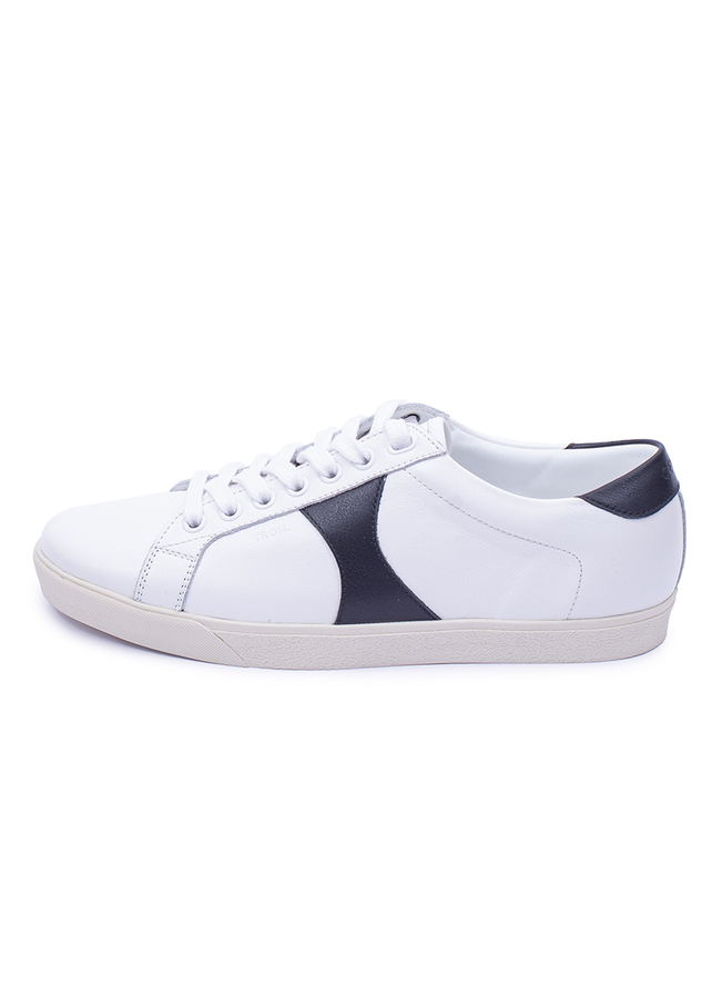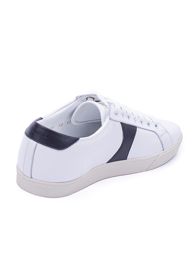 - Шкіряні низькі кросівки з круглим носком та гумовою підошвою, ззаду вставка з логотипом