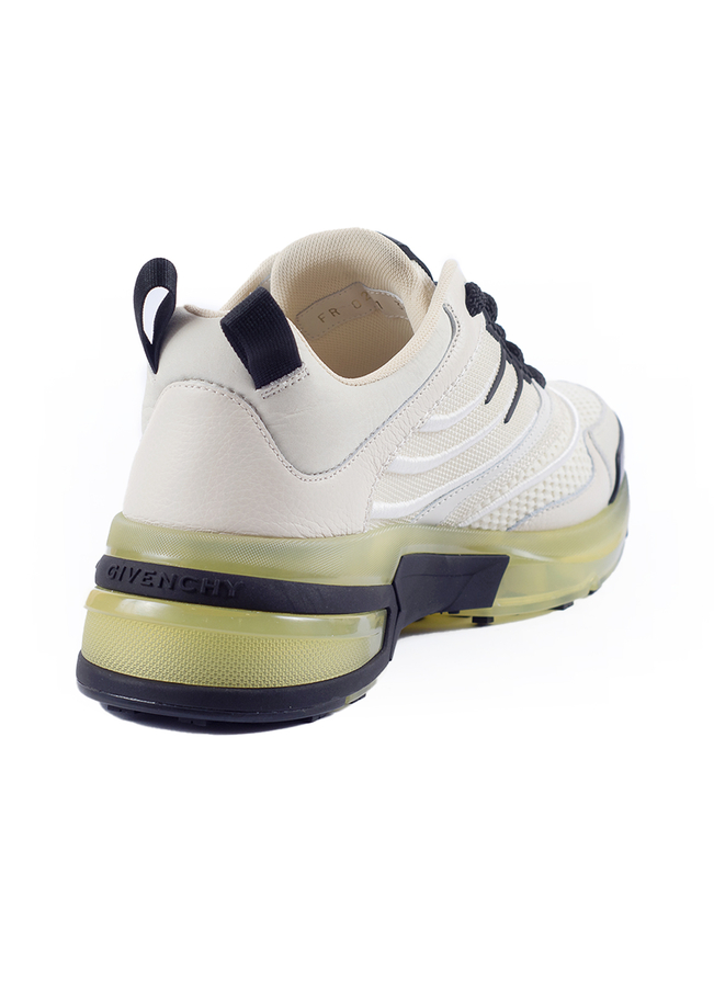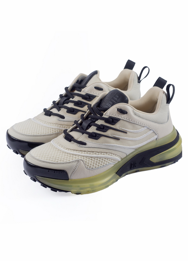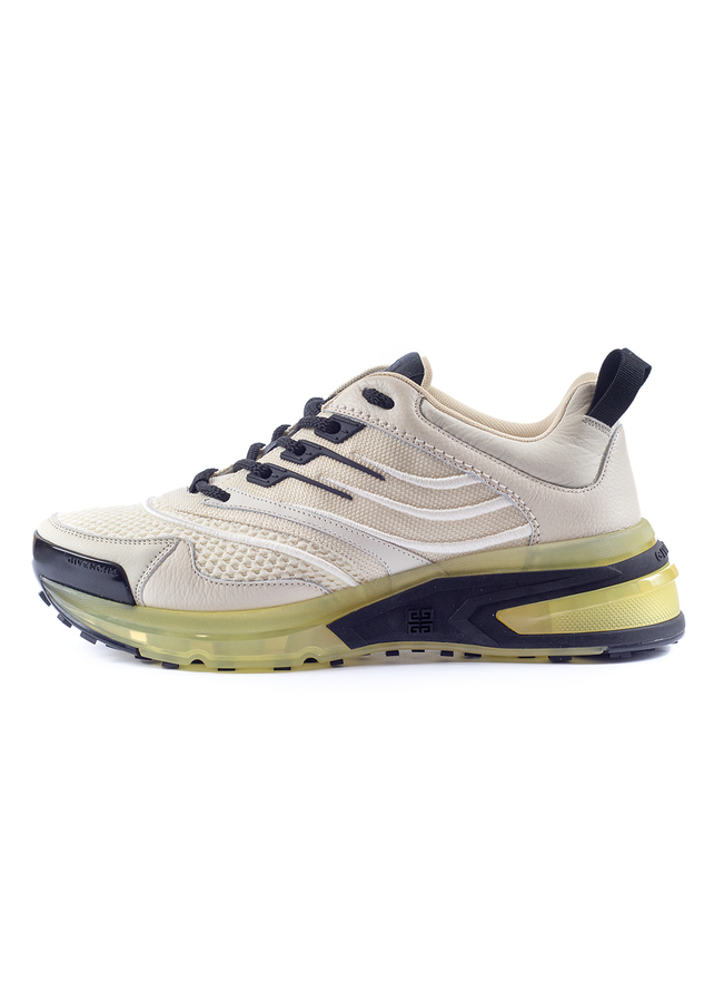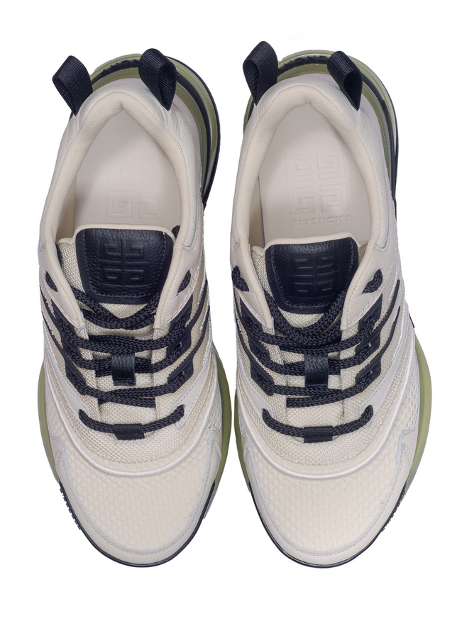 - Шкіряні кросівки GIV 1 Runner, виготовлені з сітчастим верхом і шкіряними окантовками. Білий відтінок, прозора гумова підошва, круглий носок, спереду кріплення на шнурівці, фірмовий мотив 4G, язик з тисненим логотипом, гумова підошва з ребрами.