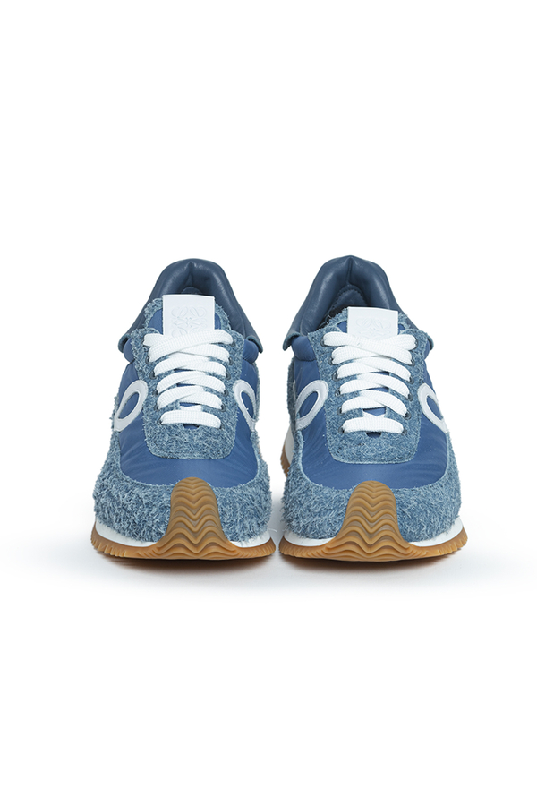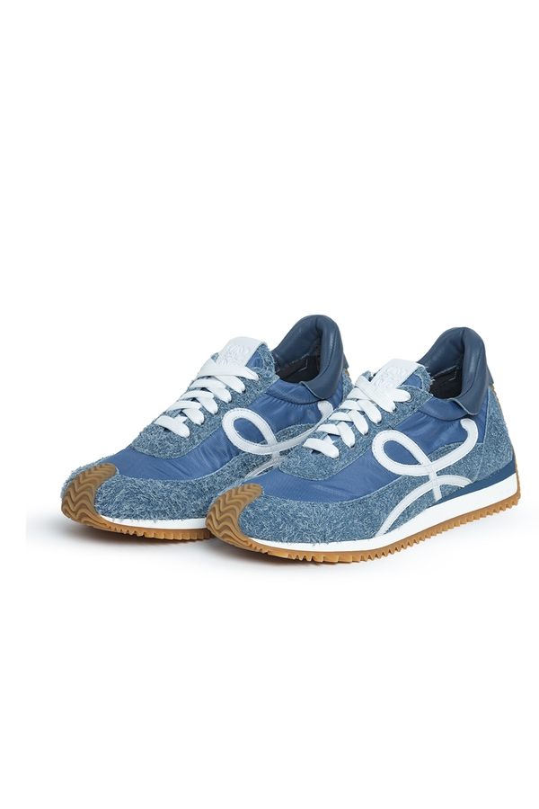 - Кросівки на шнурівці, фігурна гумова підошва, фірмовий тиснений мотив анаграми на язичку, нашивка логотипу збоку