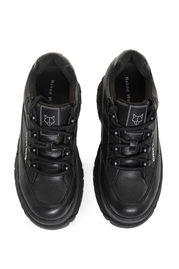 - Масивні кросівки на платформі, шнурівка спереду, шкіряна устілка, гумова накладка логотипу на п’яті, фірмовим логотип на підошві та язичку