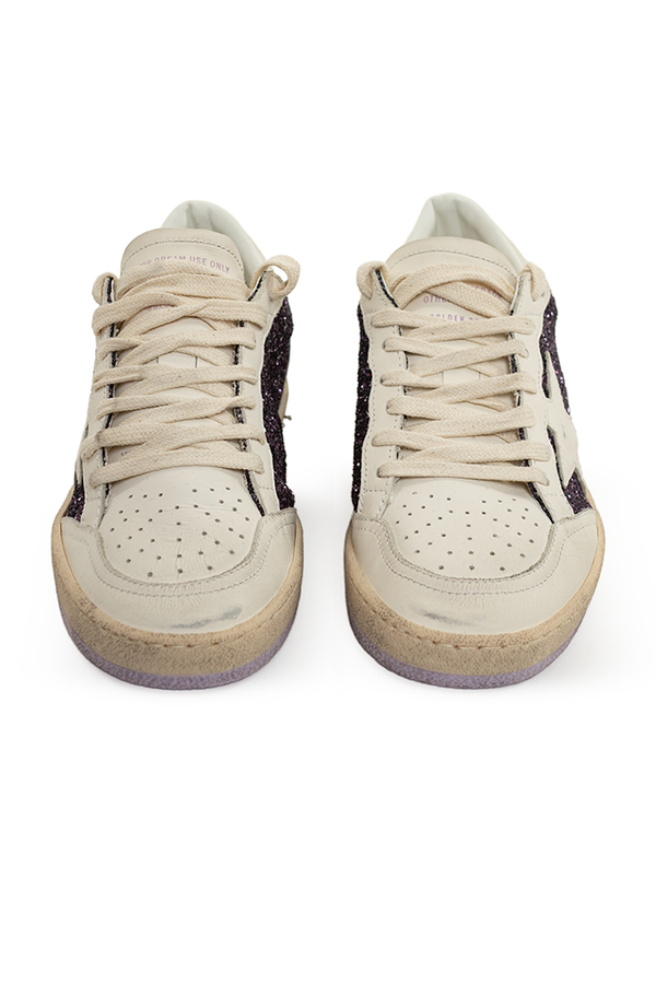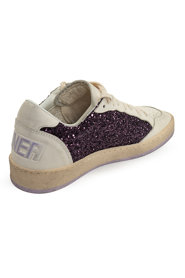 - Кросівки на шнурівці, перфорація на носку, підошва з ефектом потертості, блискітки по боках, великий двоскладовий напис «SNEAKERS» на п'ятах