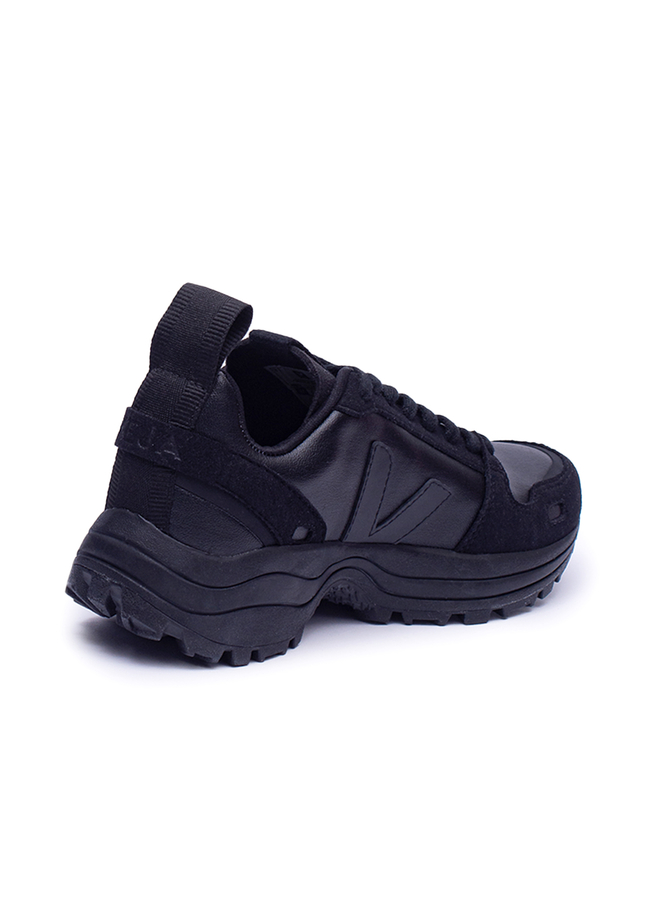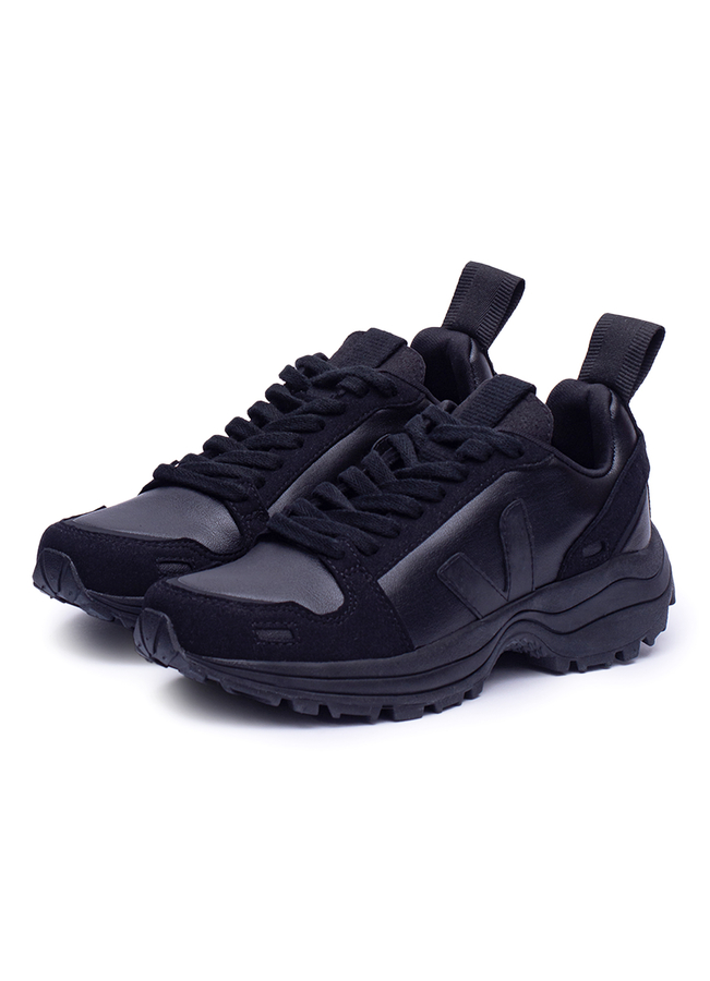 - Кросівки Venturi з колаборації з Veja. Вставки, нашівка з логотипом сбоку, закруглений носок, шнуровка спереду, петля для підтягування та ребриста резинова підошва.