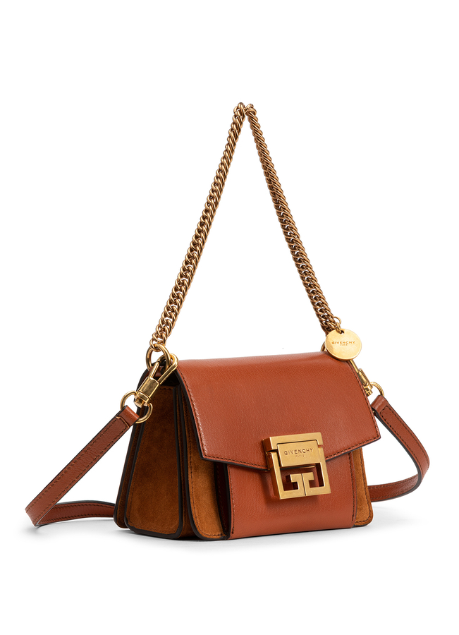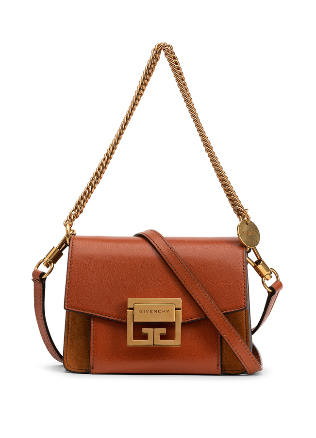 - Жіноча шкіряна сумка через плече GV3 GIVENCHY. Виконана з шкіри з елементами замші. Зверху клапан з застібкою в формі логотипу. Має довгий плечевий ремень.