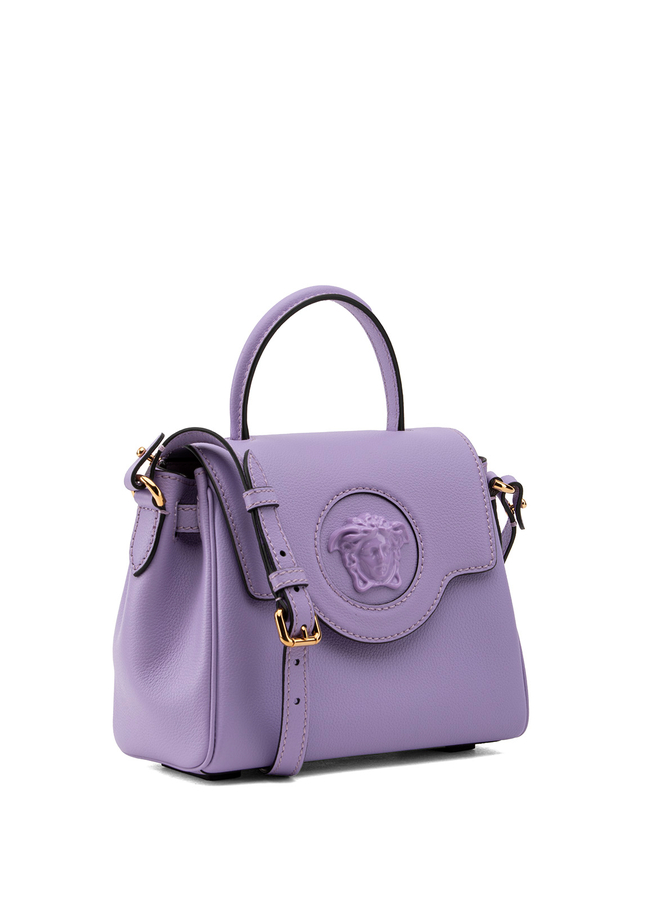 - Шкіряна сумка з логотипом Medusa, закруглена верхня ручка, застібка з клапаном спереду, знімний ланцюговий ремінь на плече і знімний регульований ремінь на плече.