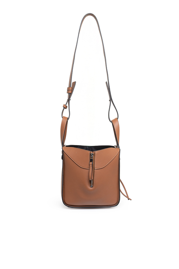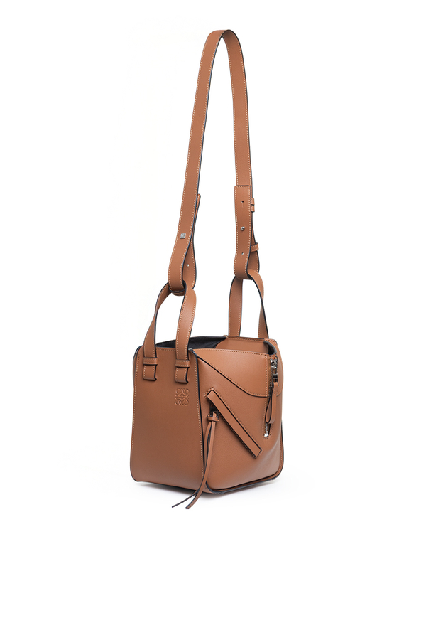 - Універсальна шкіряна модель Hammock з гнучкими боковинами, які складаються та розкладаються, знімний регульований ремінь, внутрішня застібка на гачок, одна зовнішня кишеня на блискавці, дві внутрішні накладні кишені, бавовняна підкладка, тиснена анаграма