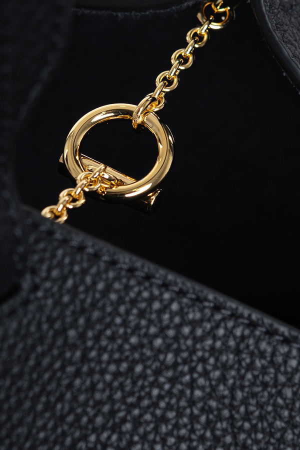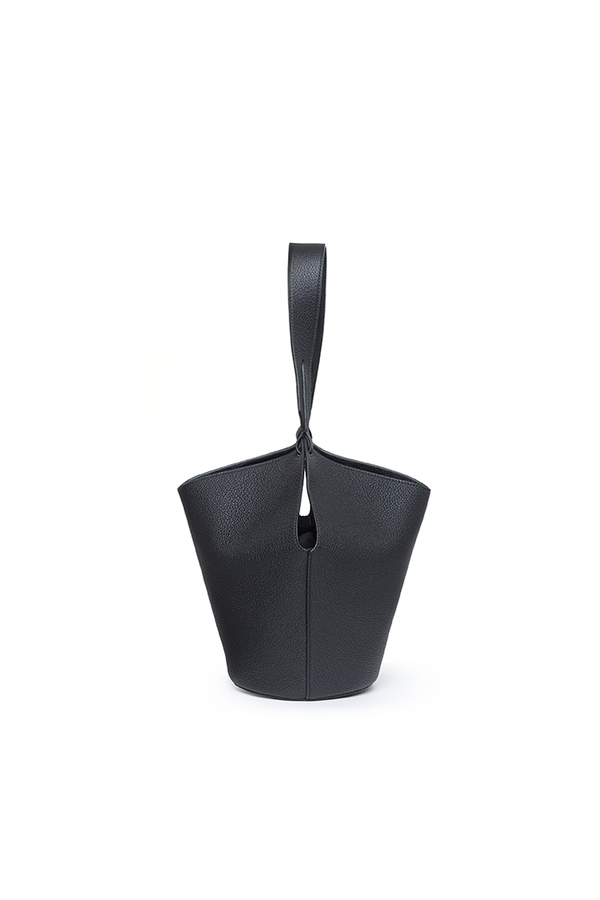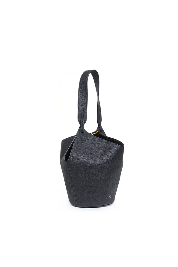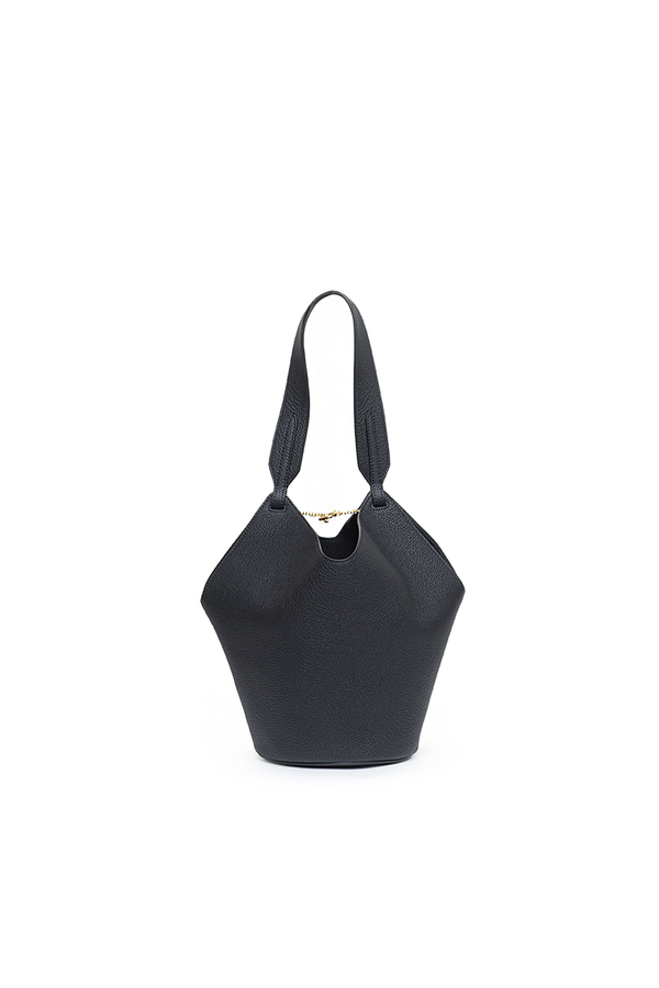 - Міні-сумка на плече Khaite Lotus Chain, чорний ланцюжок, верхня ручка з текстурованим покриттям.