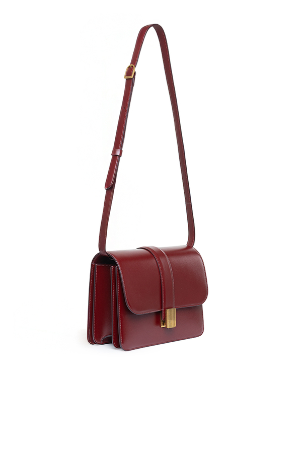 - Шкіряна сумка через плече Blake у вигляді коробки із клапаном, регульований та знімний ремінець, фурнітура золотистого кольору, усередині кілька відділень і внутрішня накладна кишеня