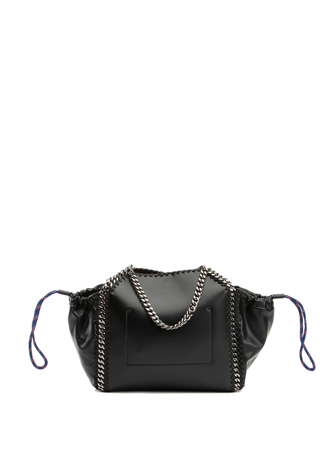 - Сумка з гладкої штучної шкіри, оброблена фірмовим ланцюжком сріблястого відтінку. Магнітне кріплення, внутрішня накладна кишеня, кріплення на шнурках, регульований знімний плечовий ремінь, дві верхні ручки.