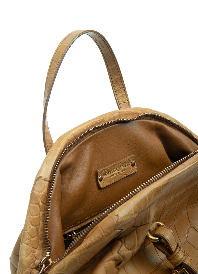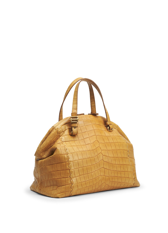 - Шкіряна сумка з двома короткими круглими ручками. Застібка на блискавку. Всередині один єдиний простір з бічною прорізною кишенею на блискавці. Підкладка зі шкіри.