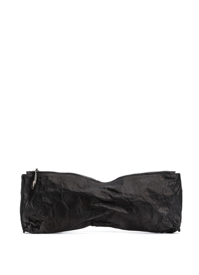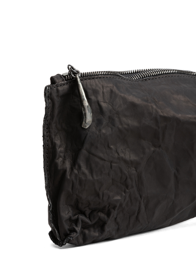 • Шкіряний клатч прямокутної форми с застібкою на подвійну блискавку, м'ятий дизайн.