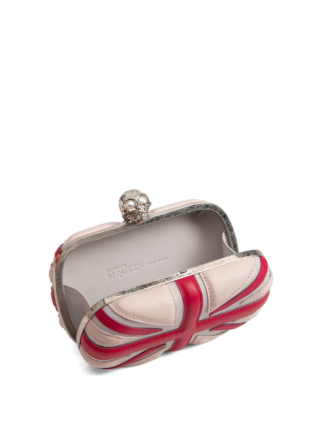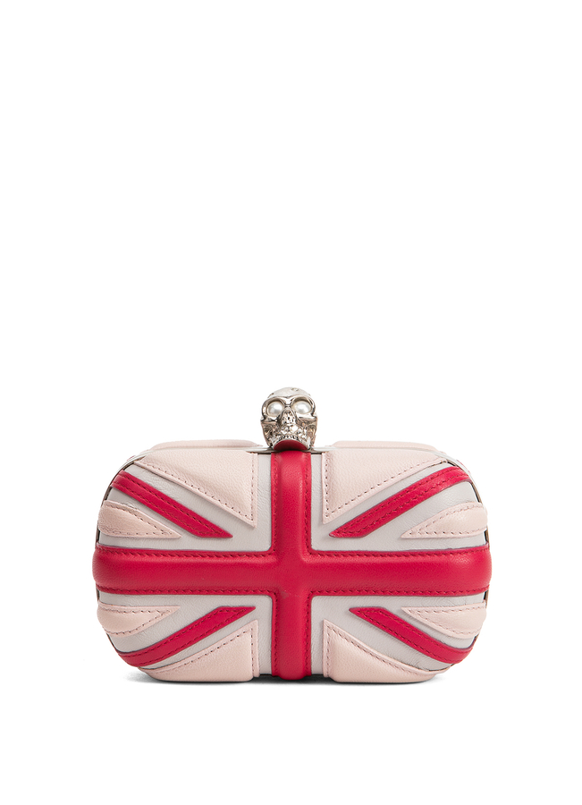 - Шкіряний клатч декорований аплікацією у формі британського прапору. Застібка у формі черепу.