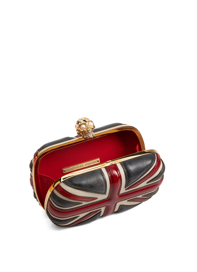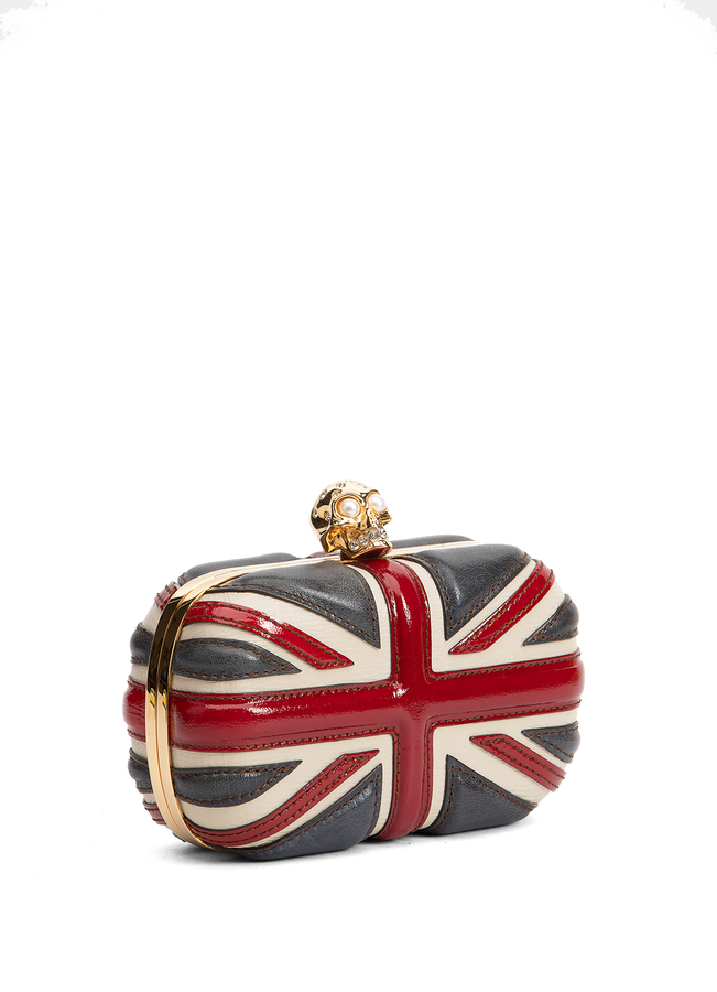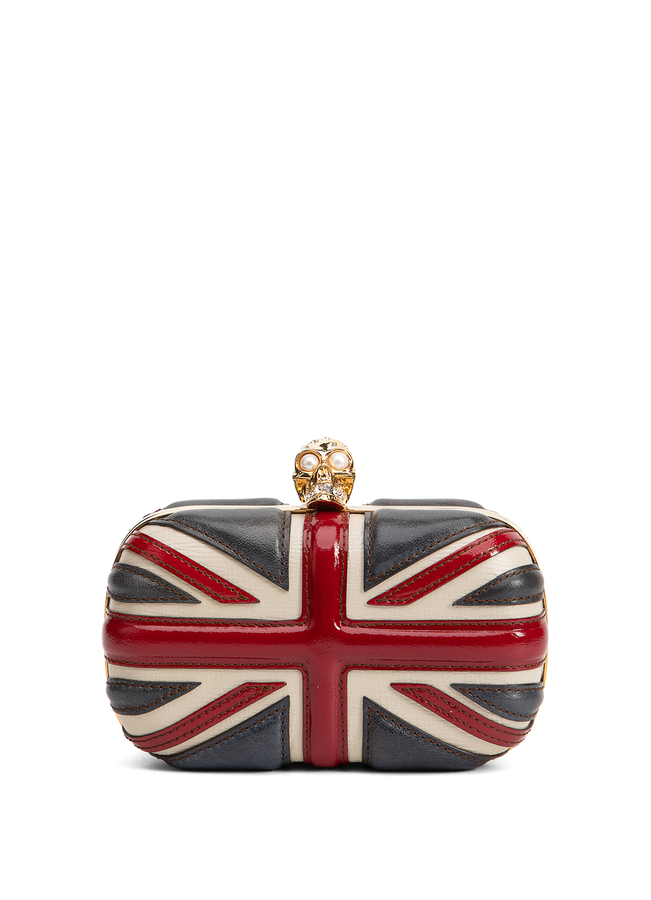 - Кожаний клатч з аплікацією Британського флага. Металлическая застежка у формі черепа.