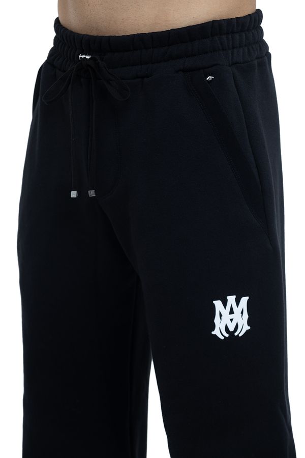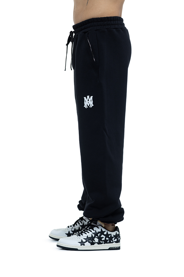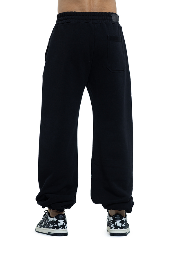 - Sweatpants with an elastic waistband with a drawstring, two side zip pockets, drawstring cuffs, a logo emblem at the front, a patch pocket at the back and a leather patch