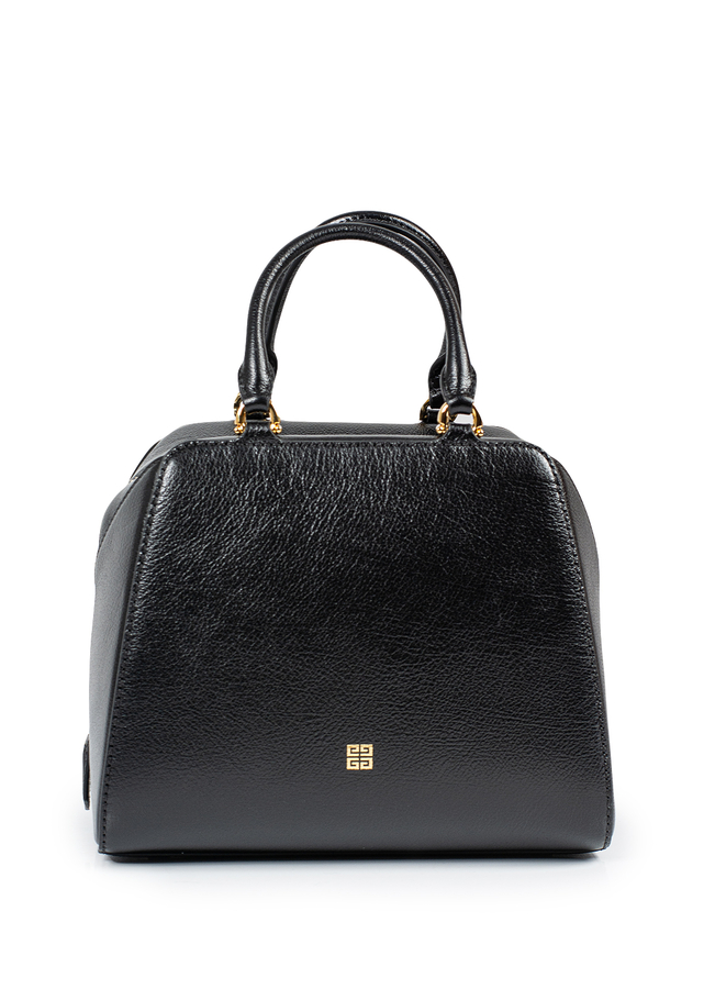 - Antigona Cube leather bowling bag features two short top handles, an adjustable and detachable shoulder strap, one compartment, a zip closure, a gold-embossed GIVENCHY patch on the front and a 4G logo on the back, and gold-tone hardware.