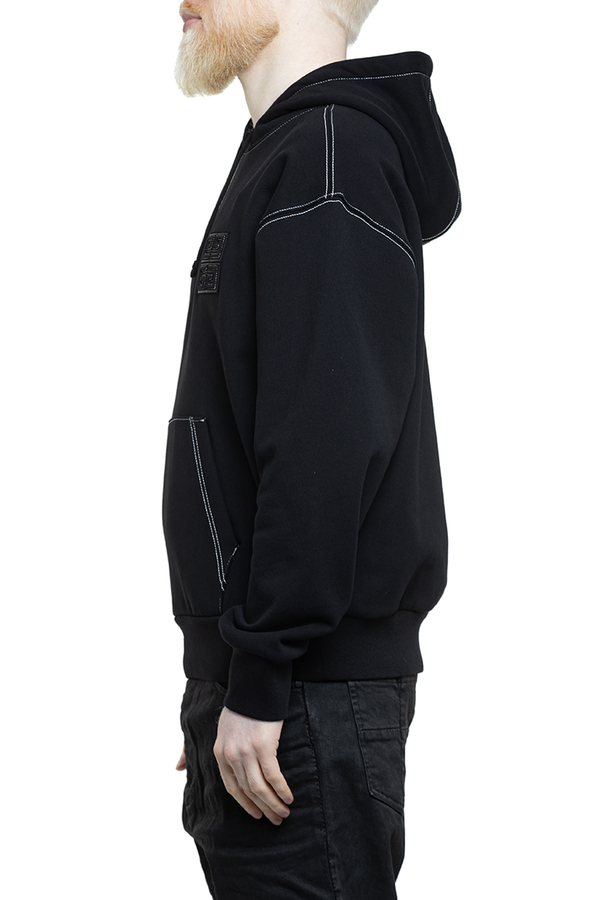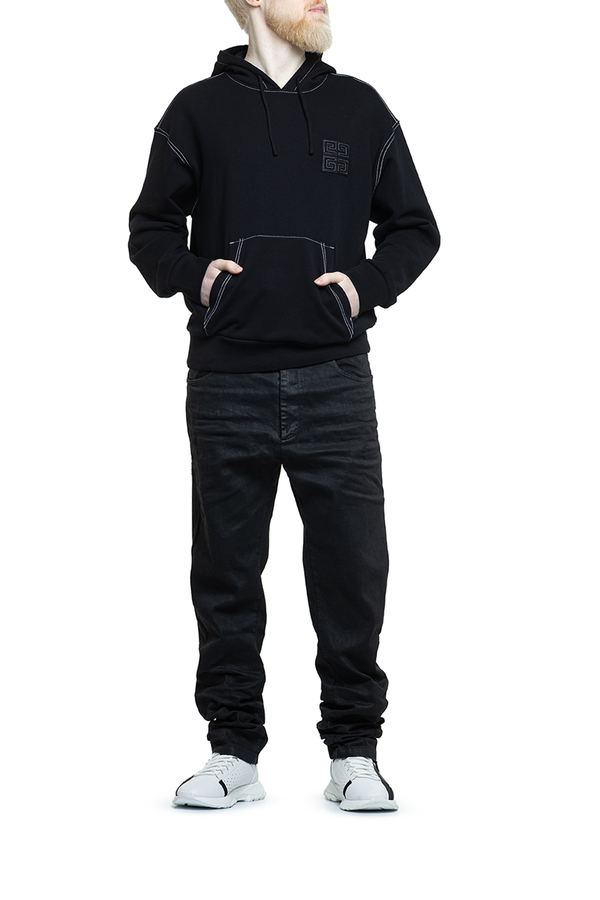 - Hoodie with contrast stitching, drawstring hood, kangaroo pocket, logo appliqué on the chest