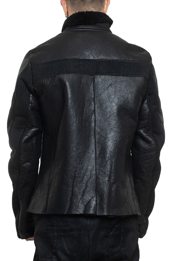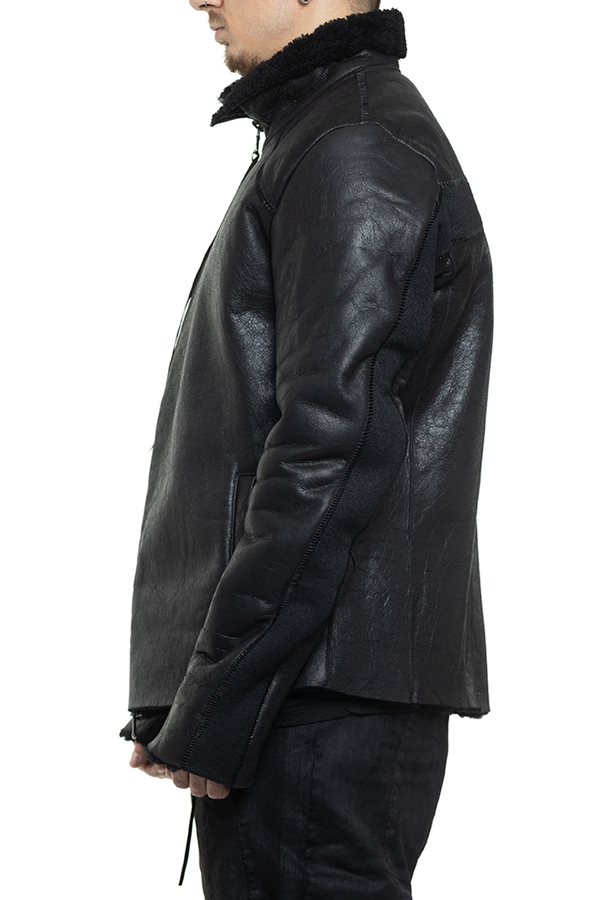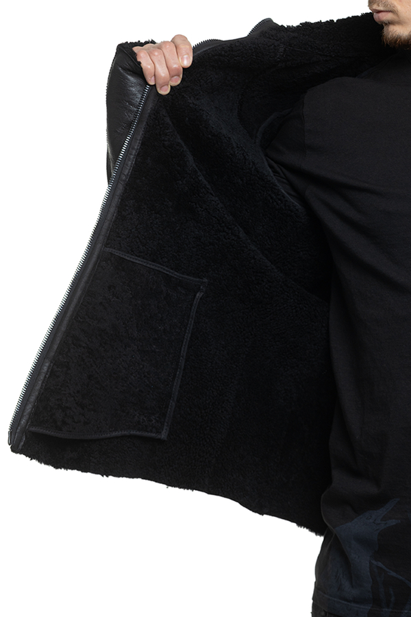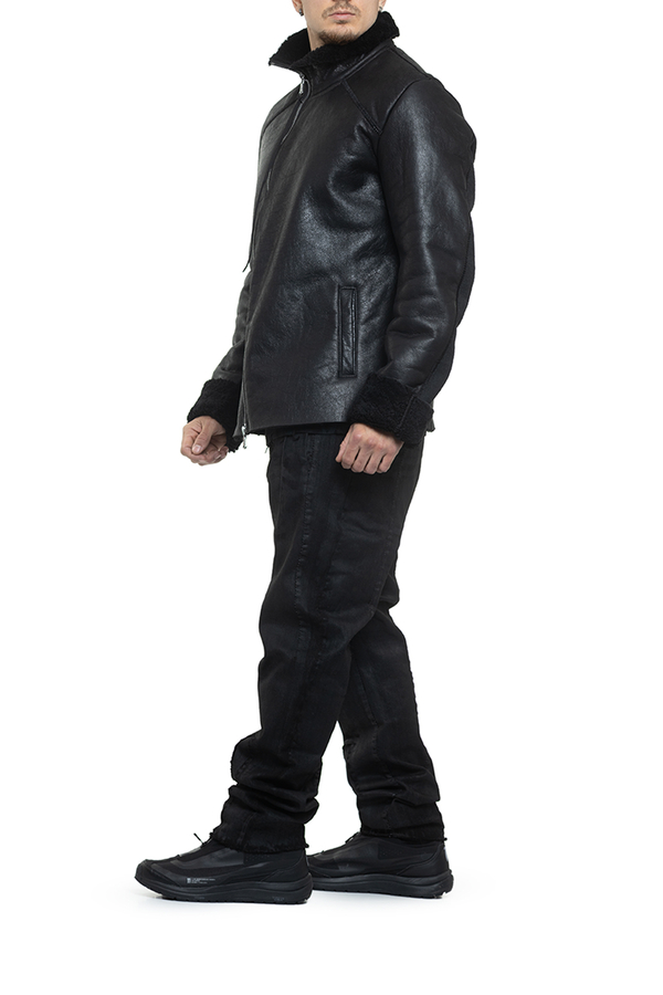 - Sheepskin coat with a high collar, double zip fastening, two slit side pockets