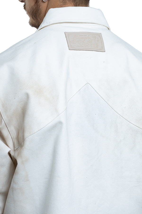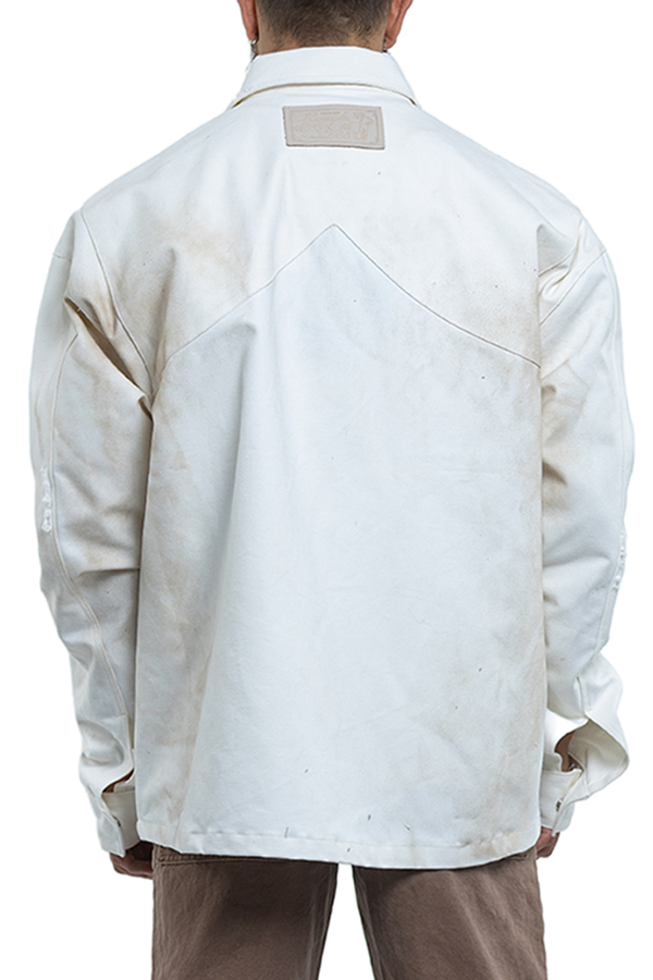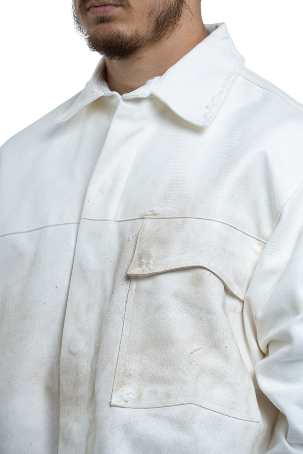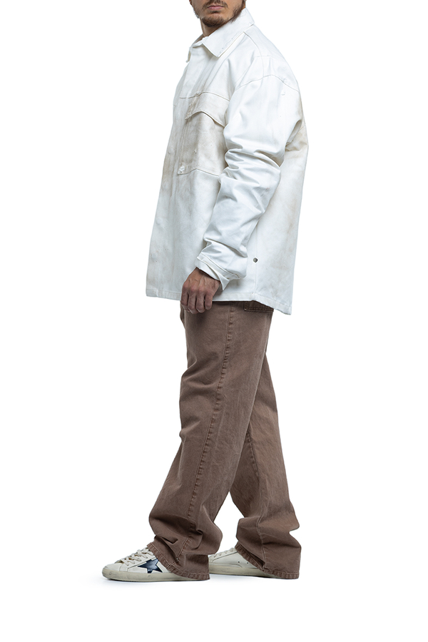- Long-sleeved shirt, loose fit, classic collar, stained effect, chest patch pocket with flap, button fastening