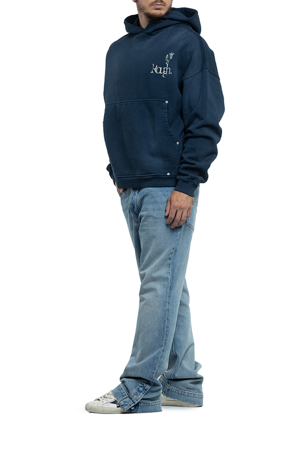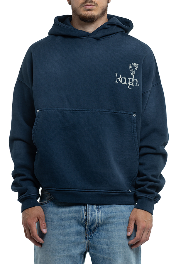 - Hooded hoodie, long sleeves, kangaroo pocket at front, original logo print at chest, logo patch at back