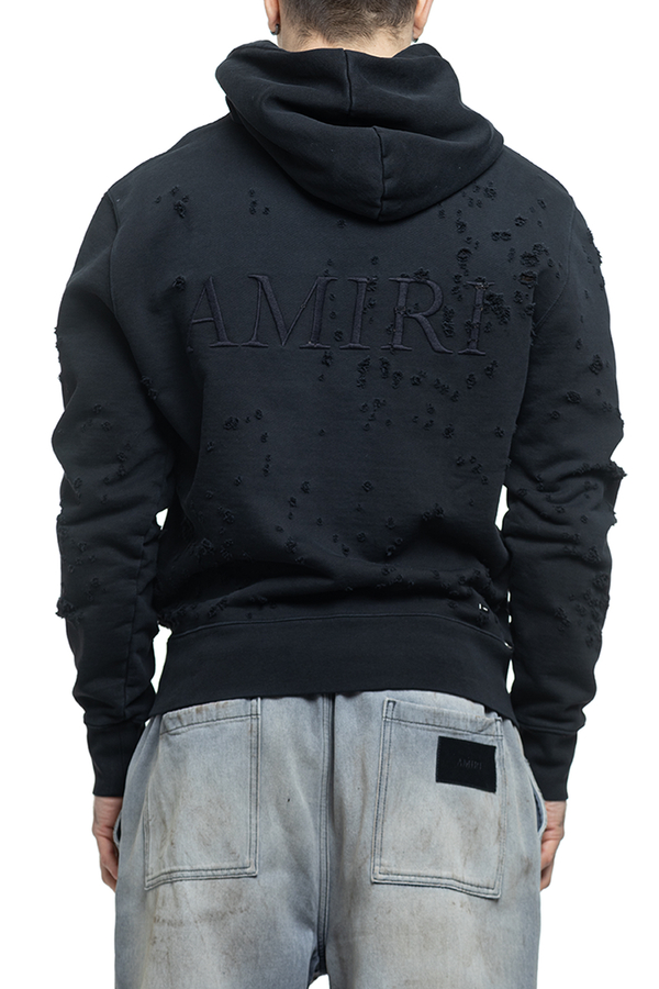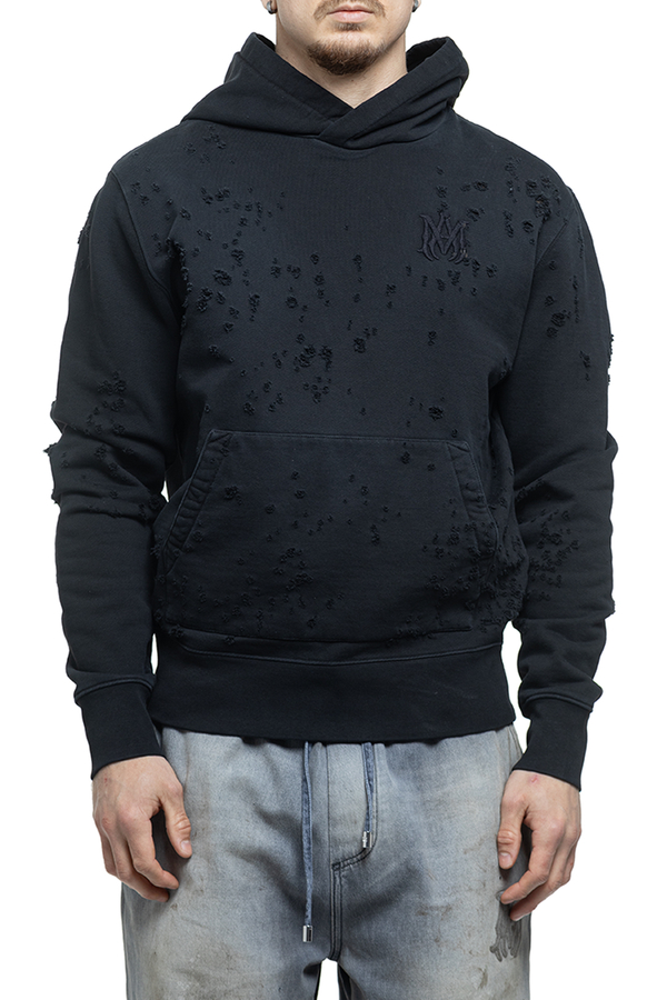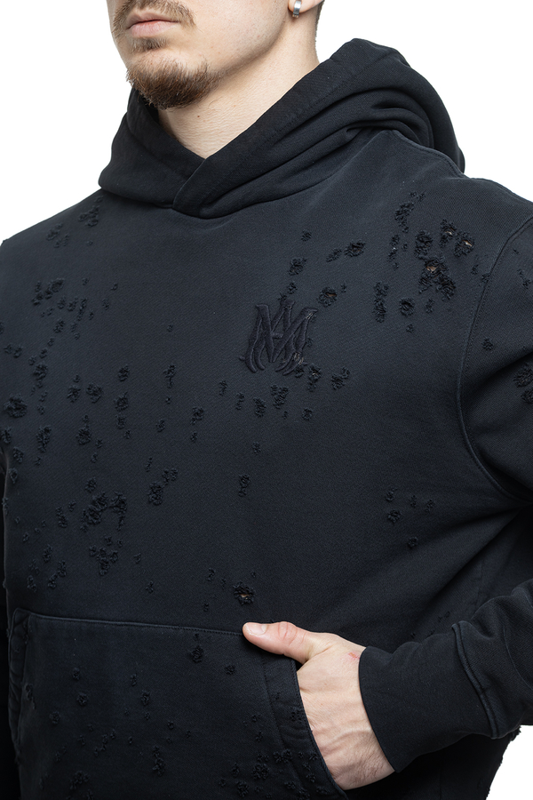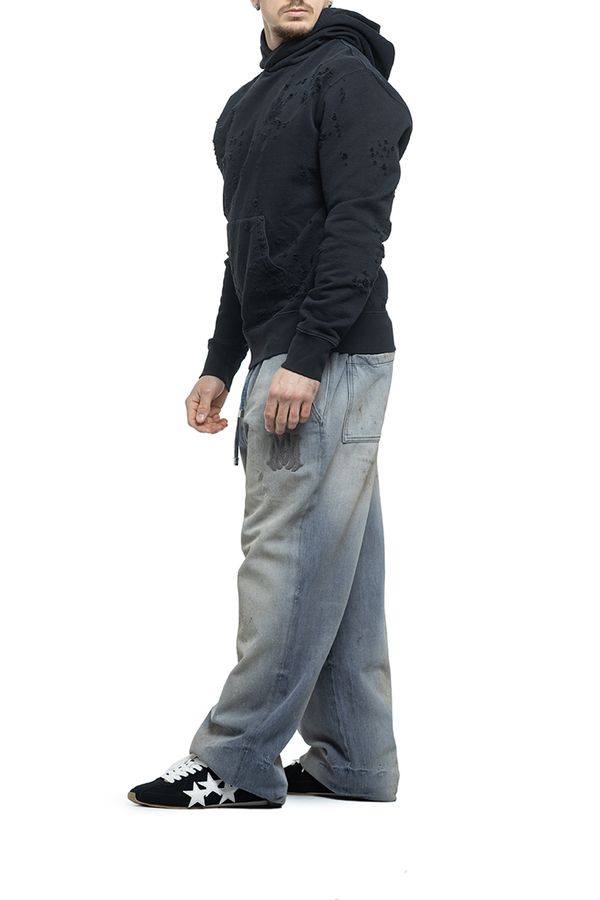 - Hooded hoodie with long sleeves, vintage effect, monogram and logo embroidery on the chest and back.