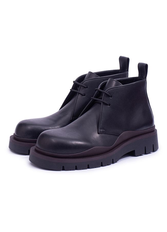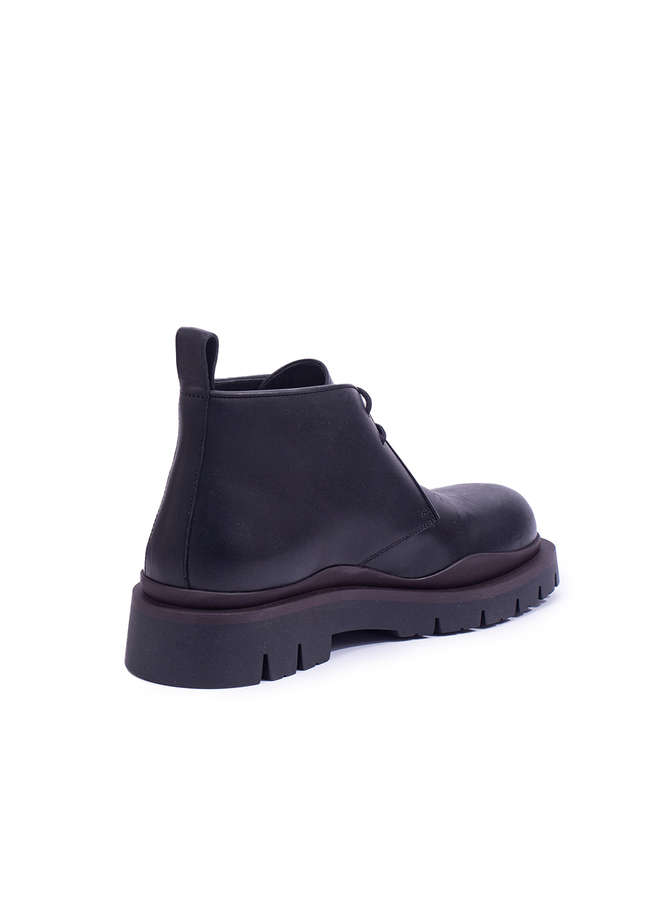 - Ankle boots with a contrasting rubber sole. Fastener with laces.