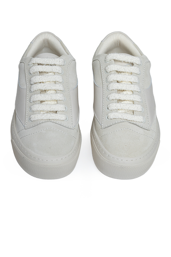 - These suede and leather sneakers feature a lace-up front fastening, a flat rubber sole, a branded insole and an embossed logo on the tongue and outsole.
