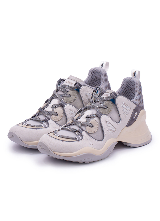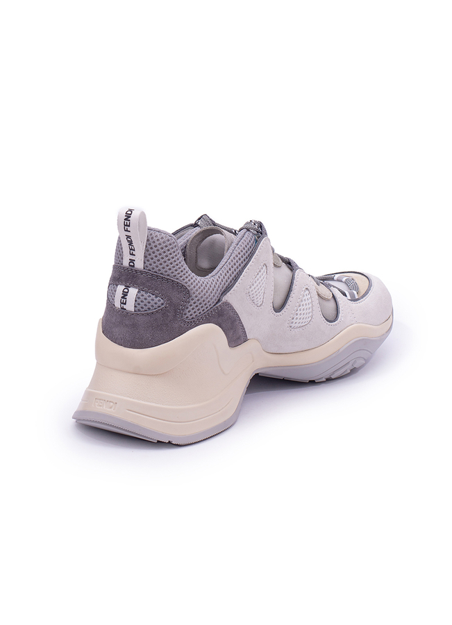 - Low-top sneakers in suede and mesh. All-over reflective silver finish. Round toe with suede trim. Tonal lace-up closure, embroidered logo at the tongue, logo loop at the heel. Tonal sculpted rubber sole.