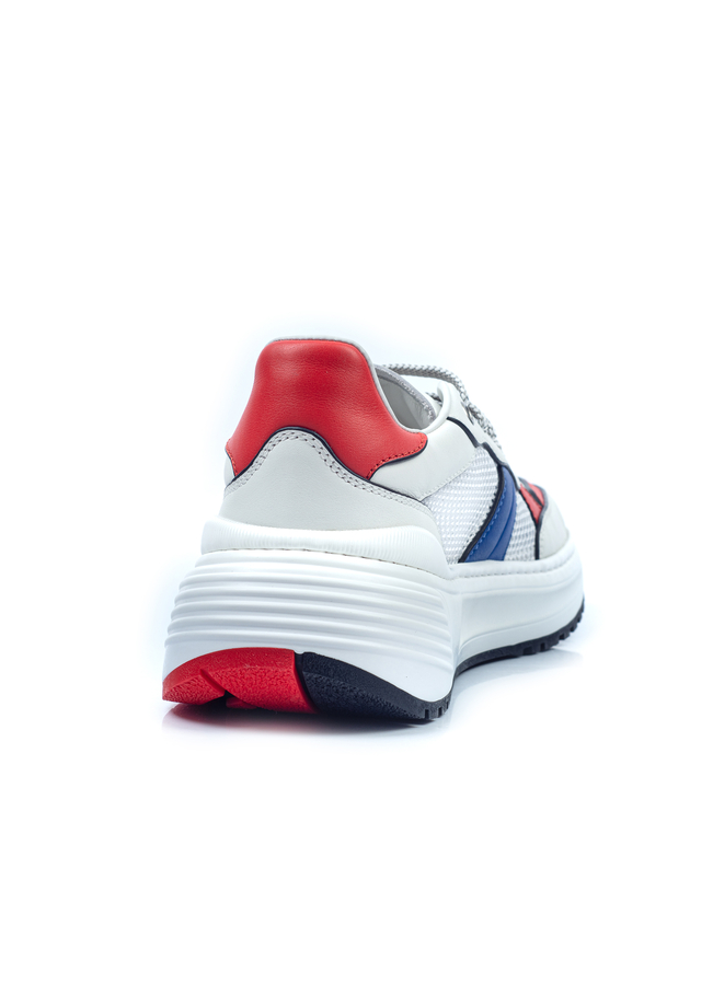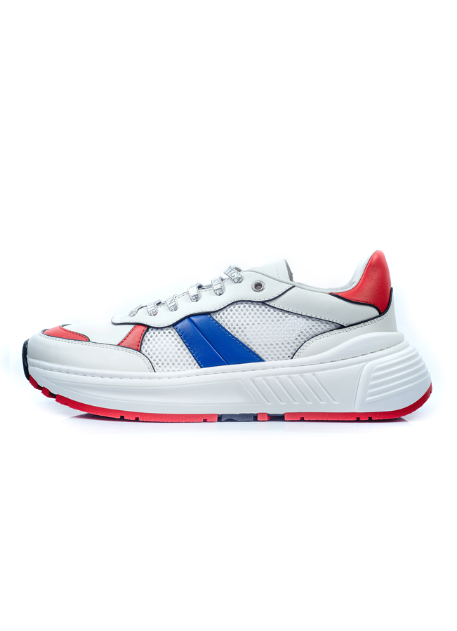 - Leather sneakers with inserts made of thin perforated microfiber, with stripes of smooth matte leather, on a wide shock-absorbing sole.