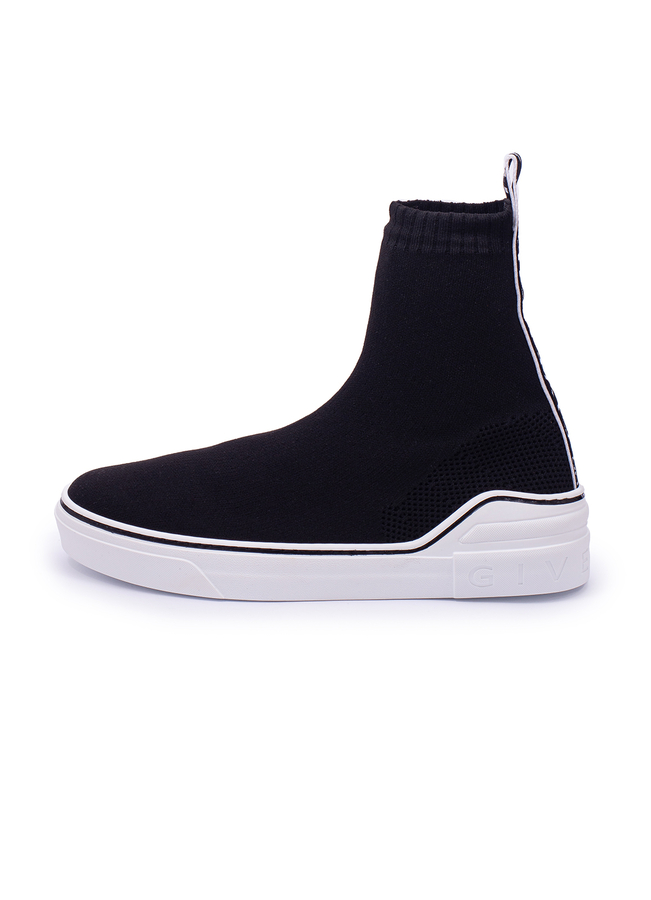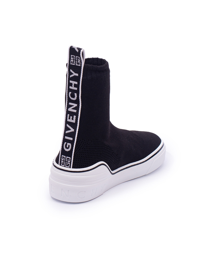 - Slip-On Logo Knitted Sock Black Trainers. Givenchy Black Shoes. Stretch fabric upper. Logo details on the back. Engraved logo on the sole. Rubber sole.