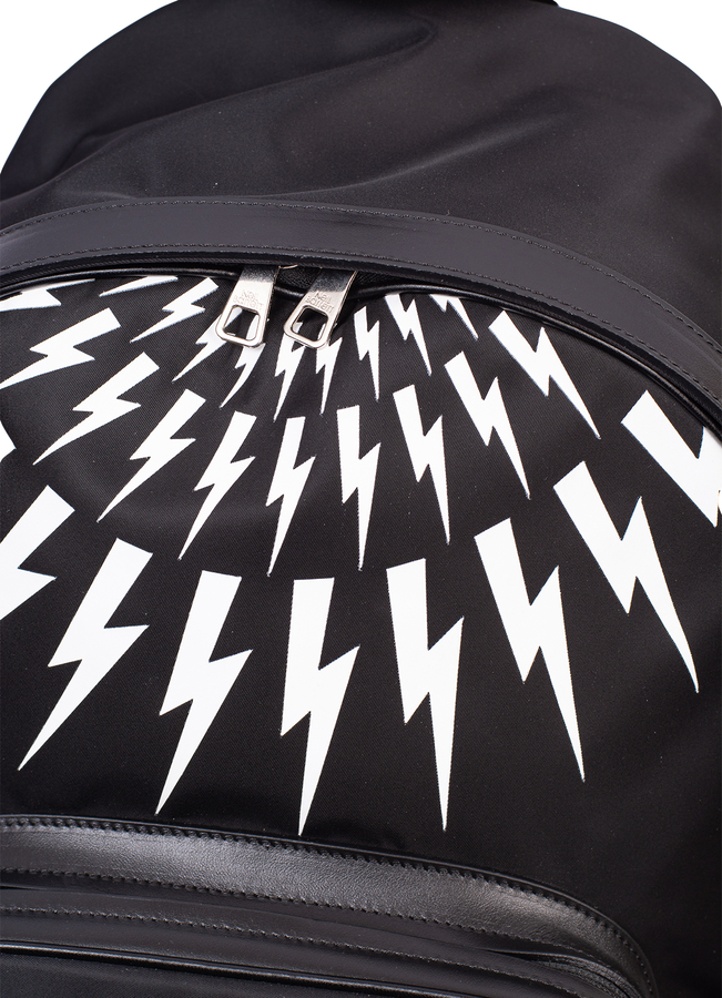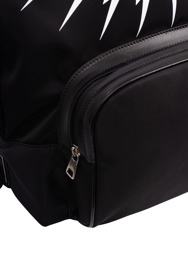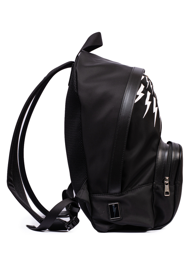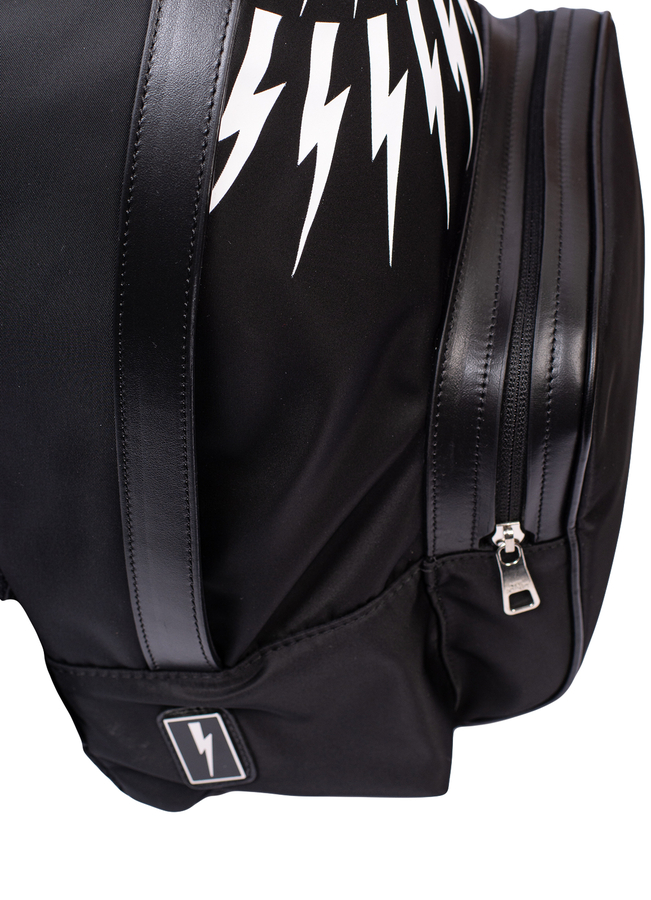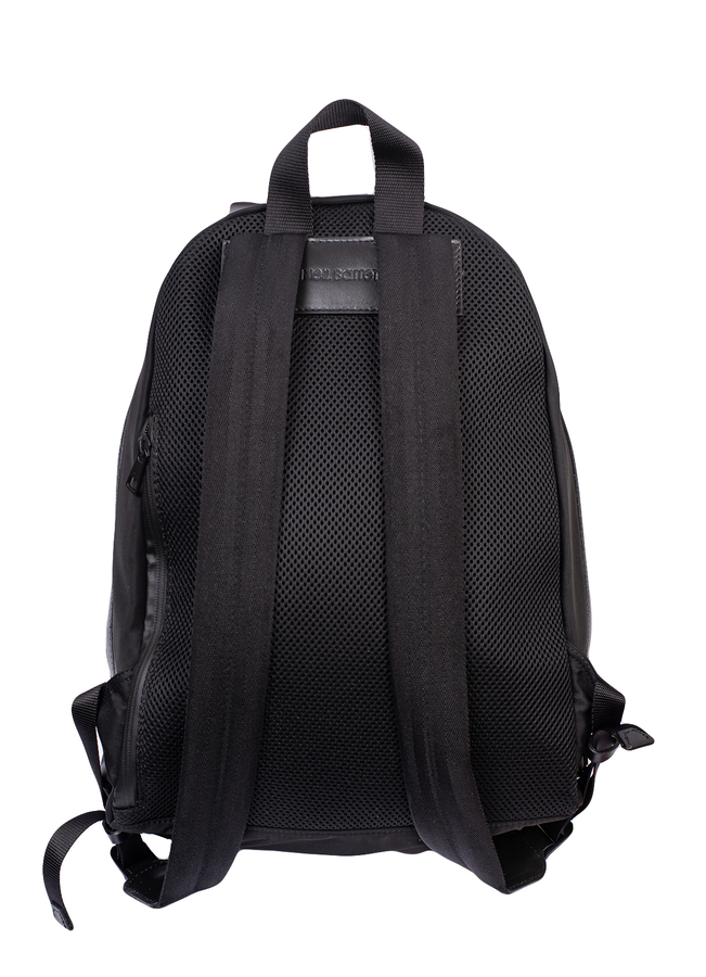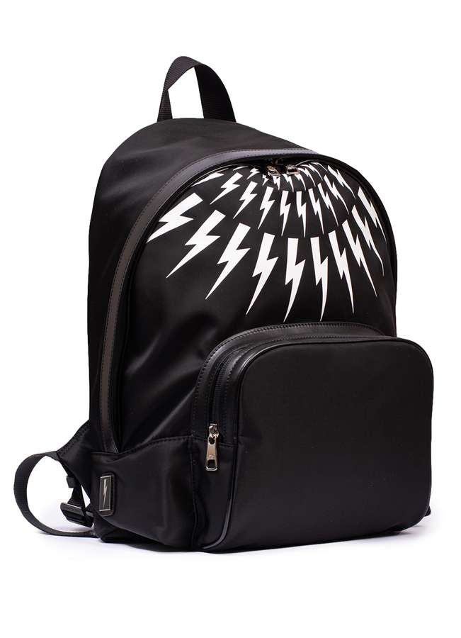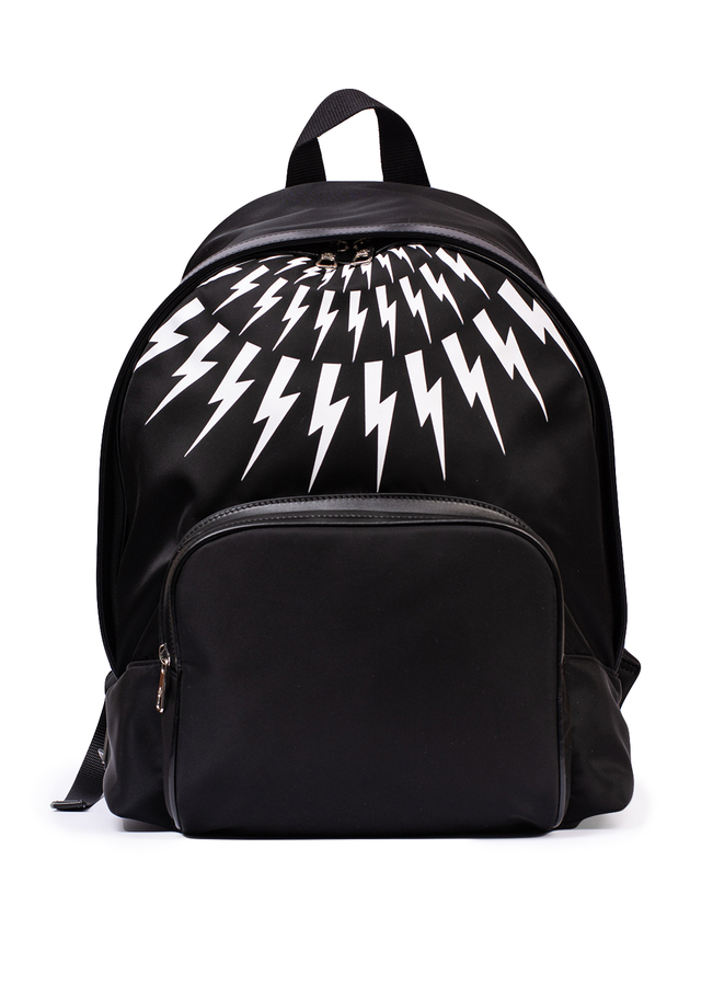 - Backpack with graphic pattern, mesh panel at back, zip closure and front pocket, one short handle and adjustable shoulder straps