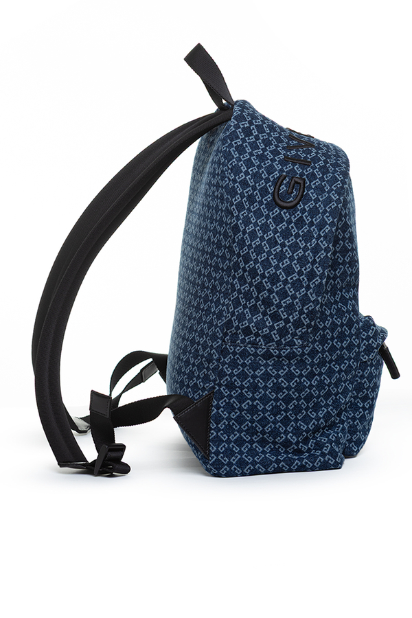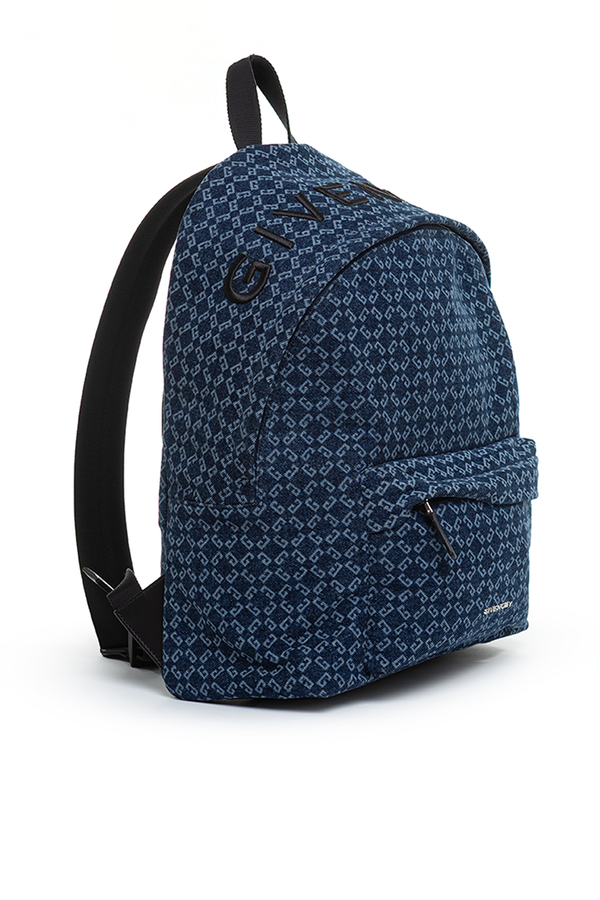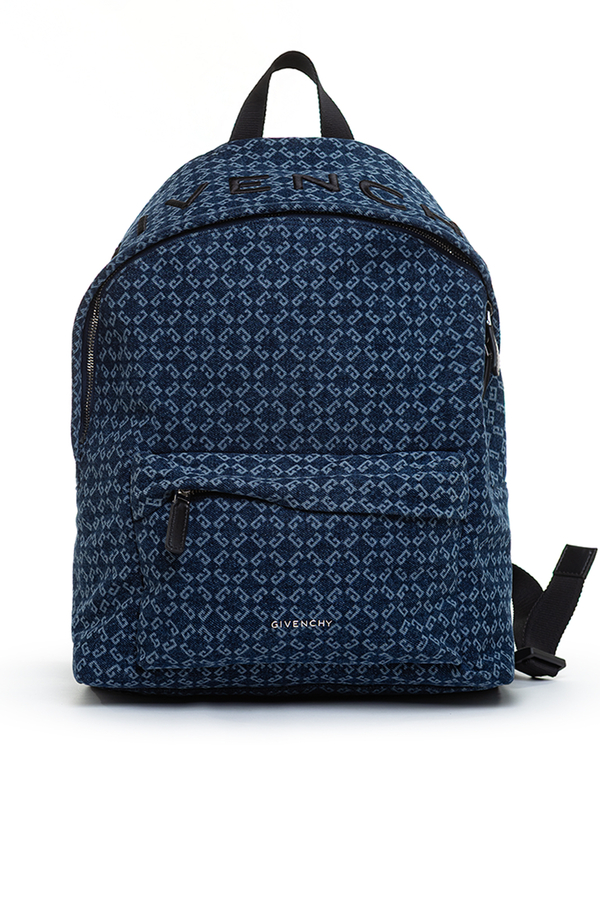 - Denim backpack, top zip fastening, front zip pocket, multiple compartments, two adjustable padded shoulder straps, one top handle, monogrammed GIVENCHY logo, complemented by branded logo on the front pocket.