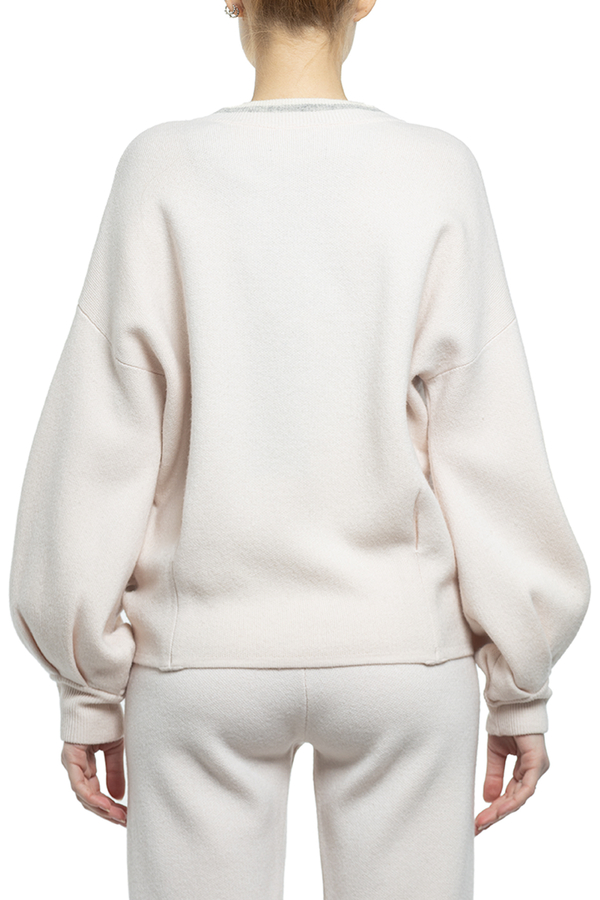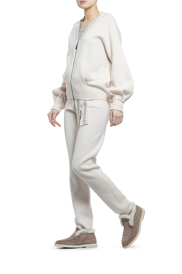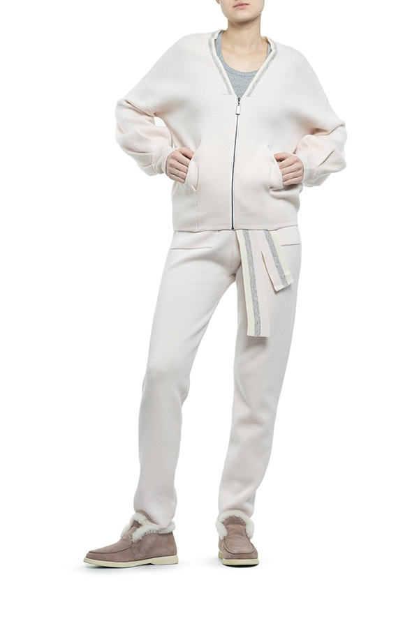 - Soft wool and cashmere sweater featuring a zip fastening and stripe design at the neck.