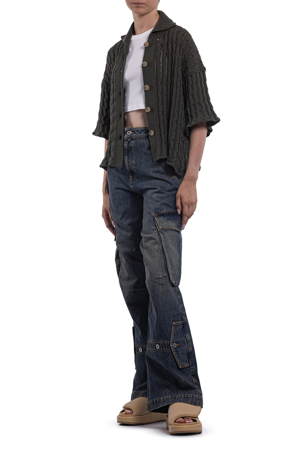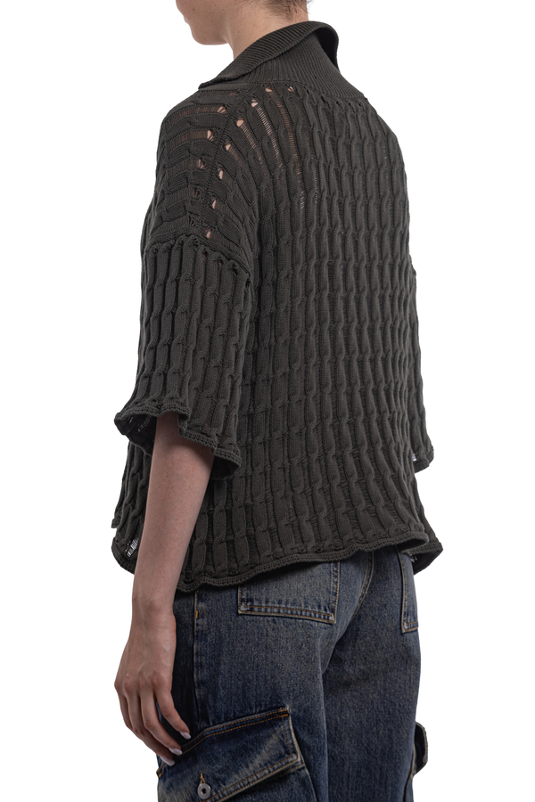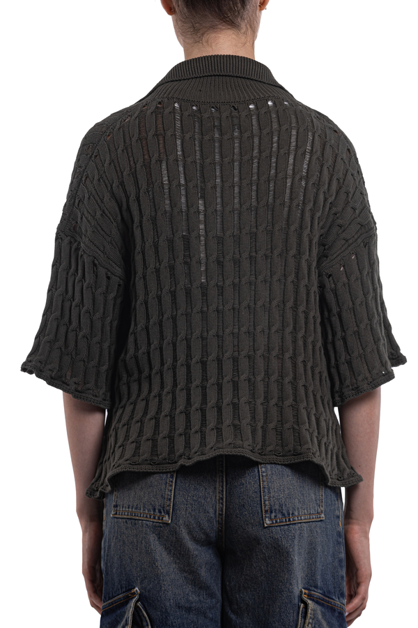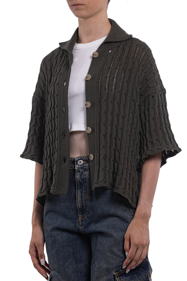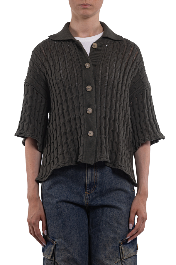 - Jersey shirt with short sleeves, dropped shoulders, front button fastening