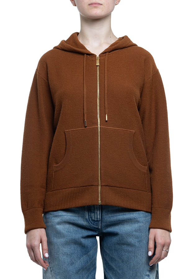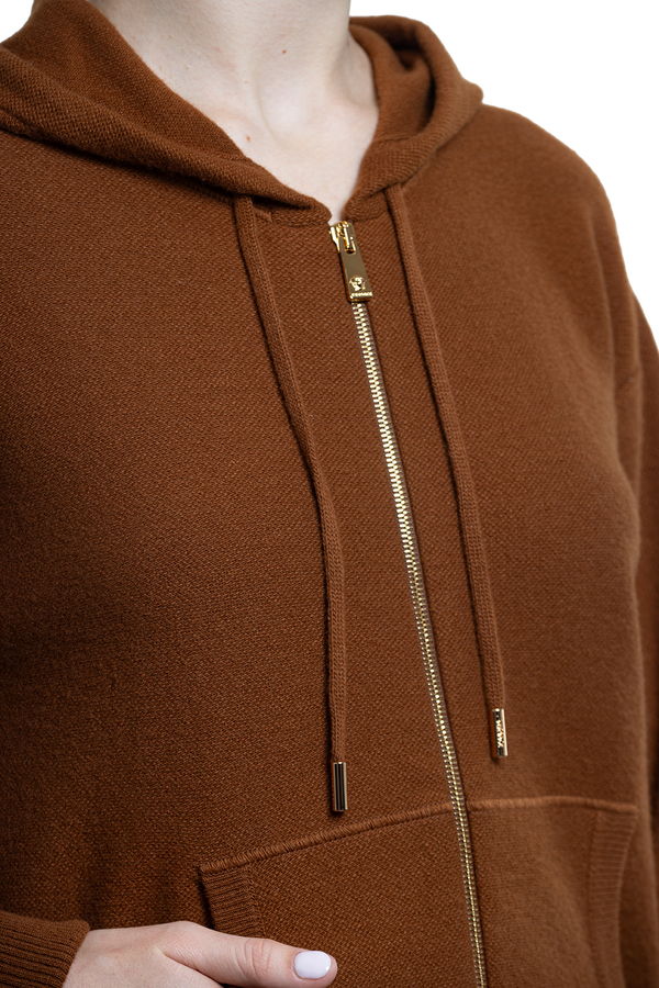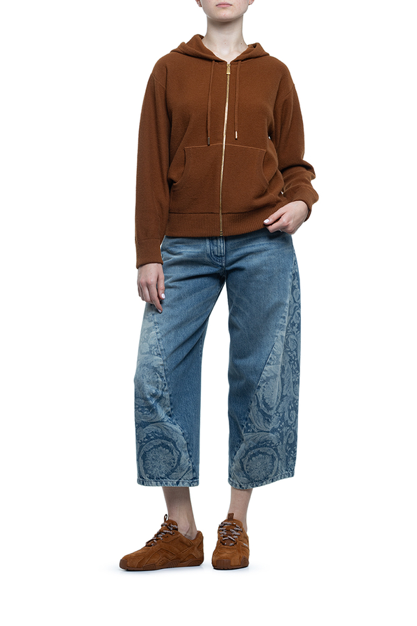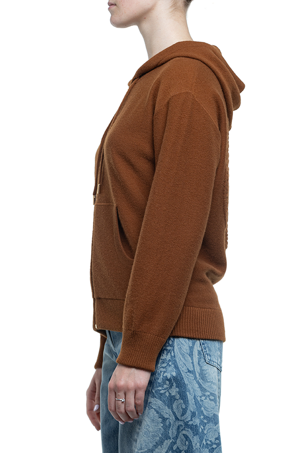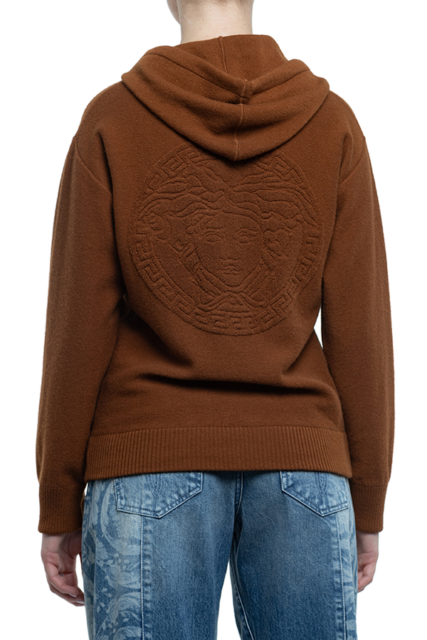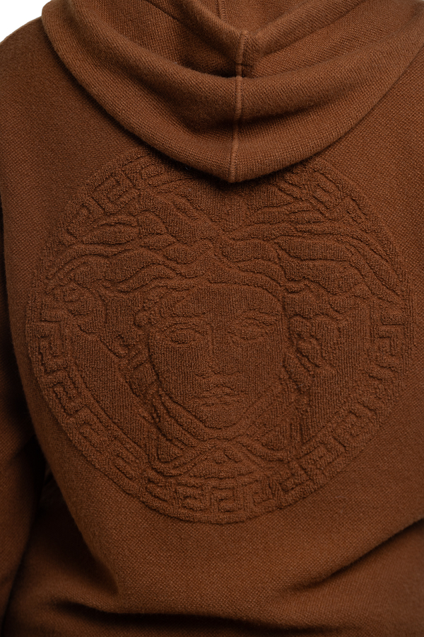 - Hoodie with drawstring, long sleeves, ribbed trim, front zip fastening, terry Medusa pattern on the back