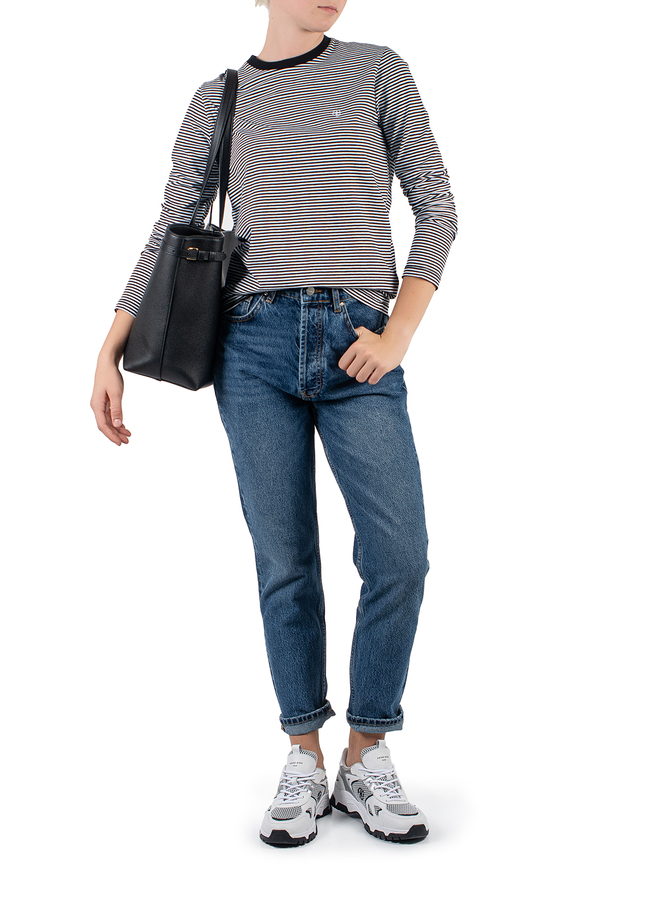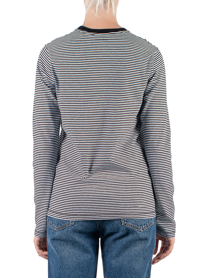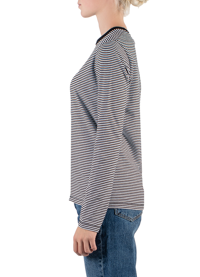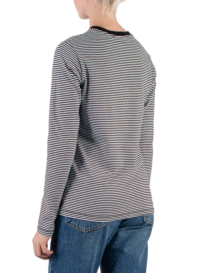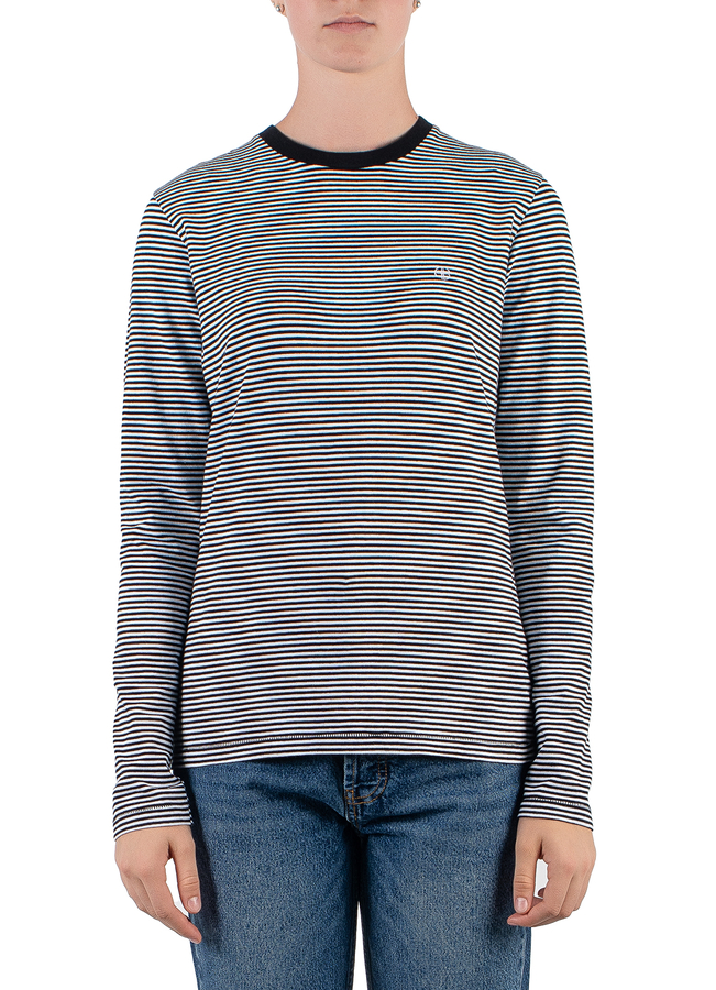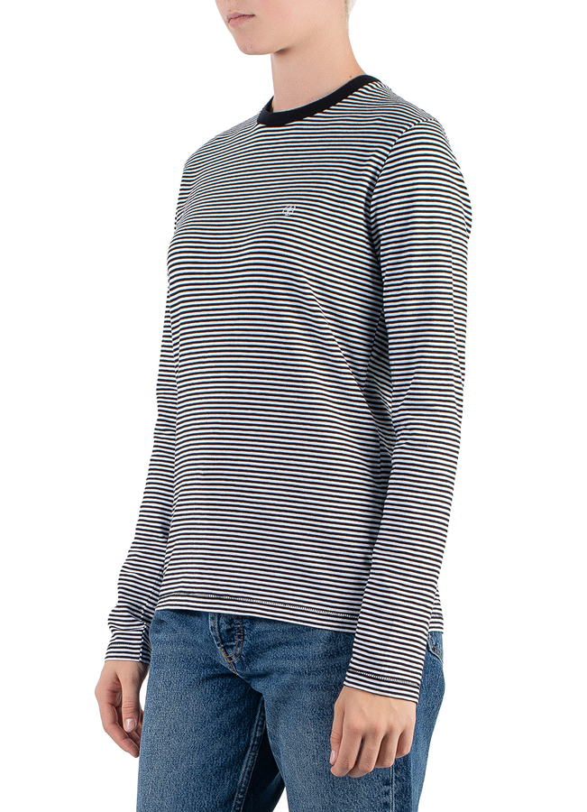 - Striped long sleeve t-shirt with a round neckline and a monogram logo on the chest.