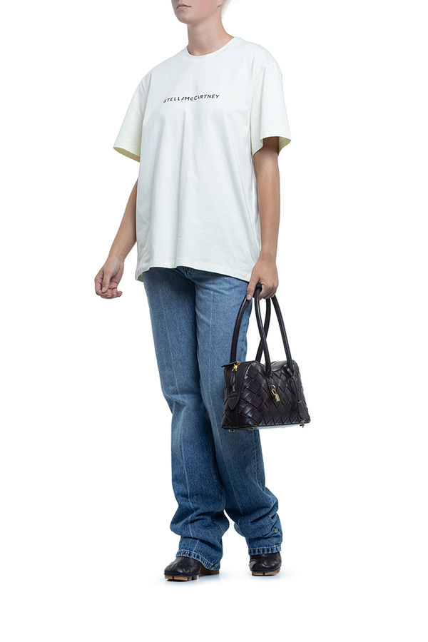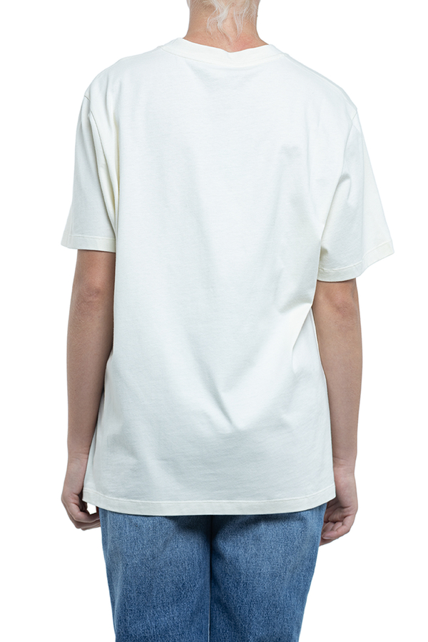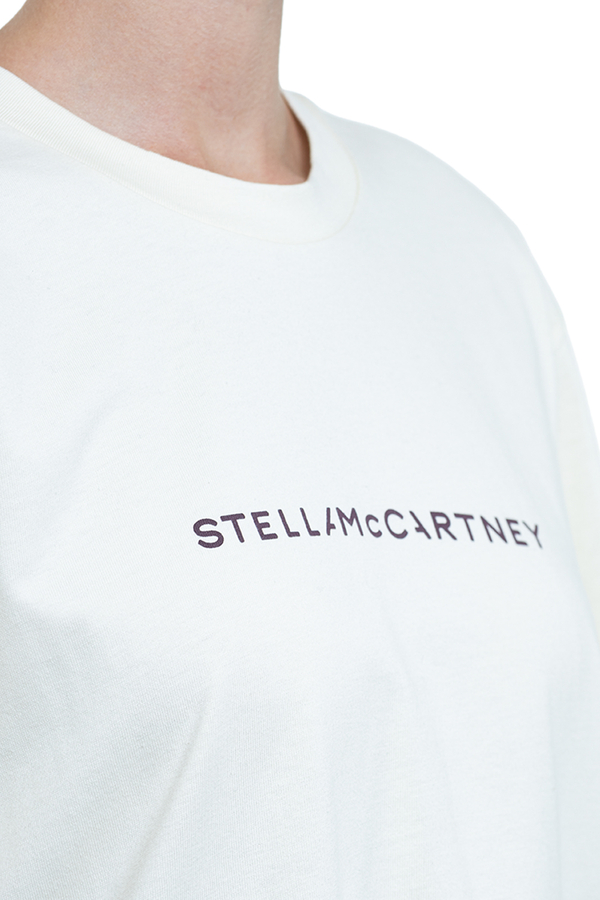 - Short sleeve T-shirt with a round neck and a printed logo on the front.