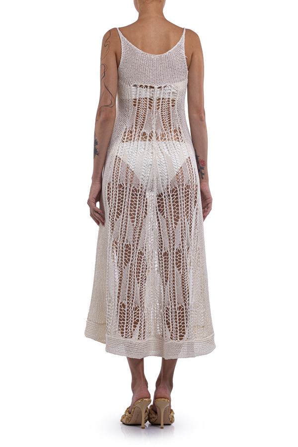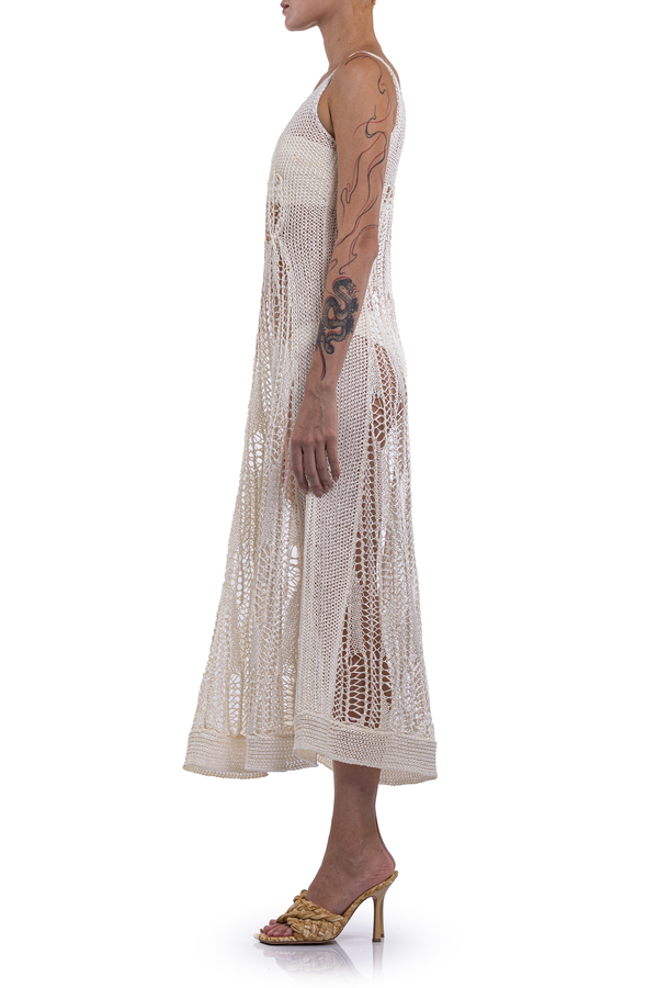 - Long crochet dress sleeveless round neck wide straps